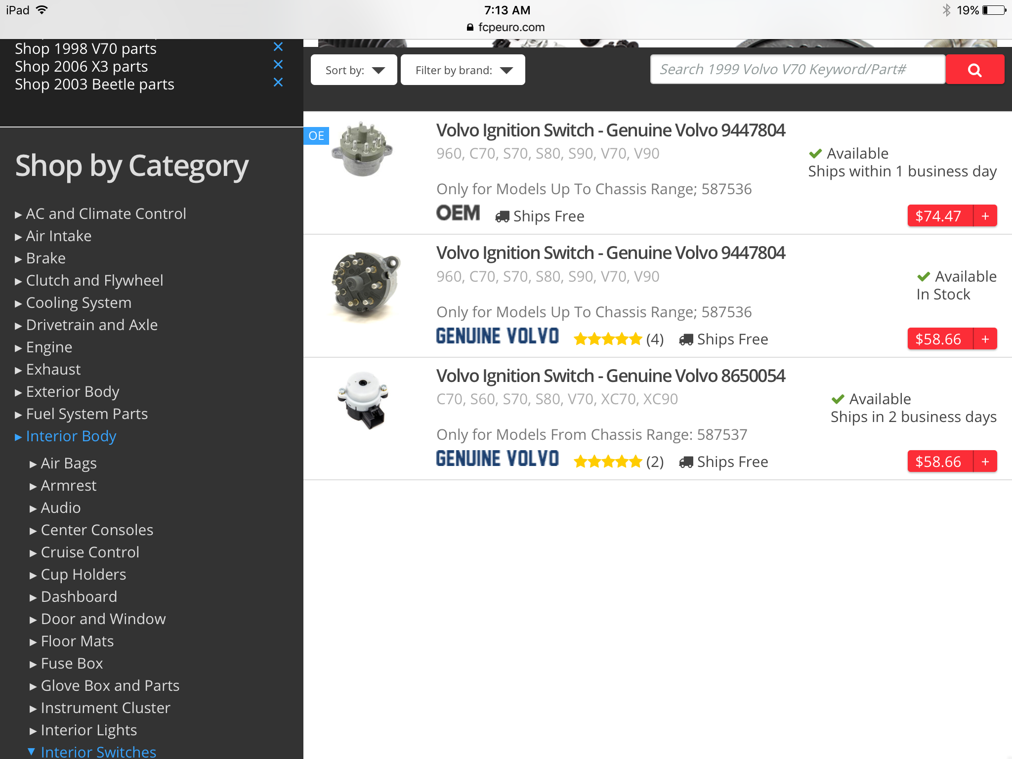 - Year and Model: 99: V70s S70s,05 V70