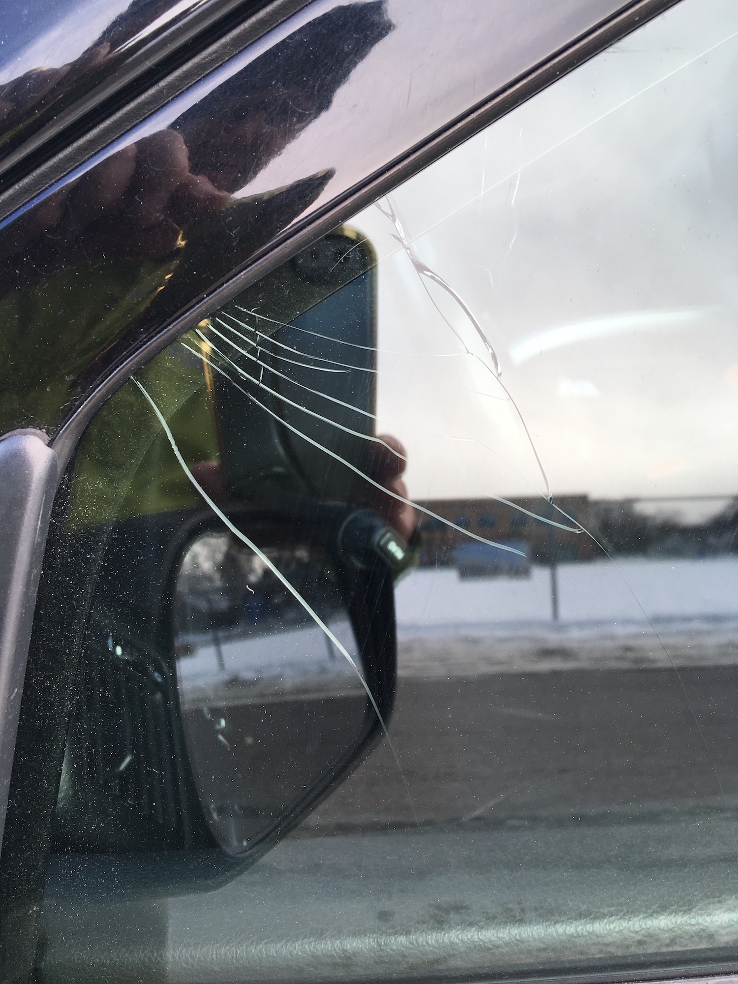 Some pics. The glass is smooth on the exterior, so I think this is laminated and the cracks are in the inner sheet.