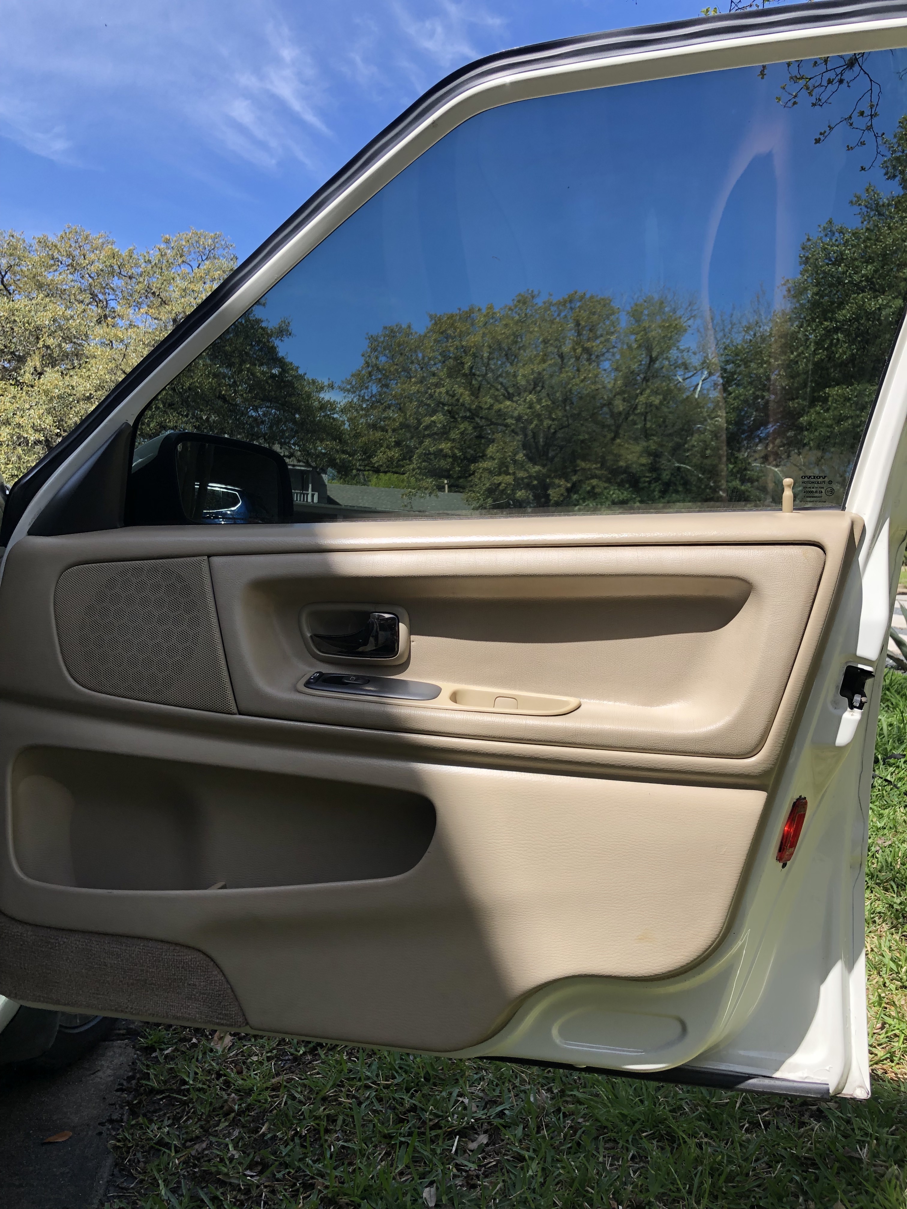 Interior 8/10 - Replaced both front seats, brand new steering wheel, replaced all the dash mounts so the dashboard doesn't squeak, replaced the motors in all four door lock actuators, original Volvo floor mats, 15% tint all around, 70% tint on entire windshield- never gets hot in the car.. windshield being tinted is amazing, Blaupunkt bluetooth stereo with microphone for hands free talking comes with remote as well, remote key fob and two keys