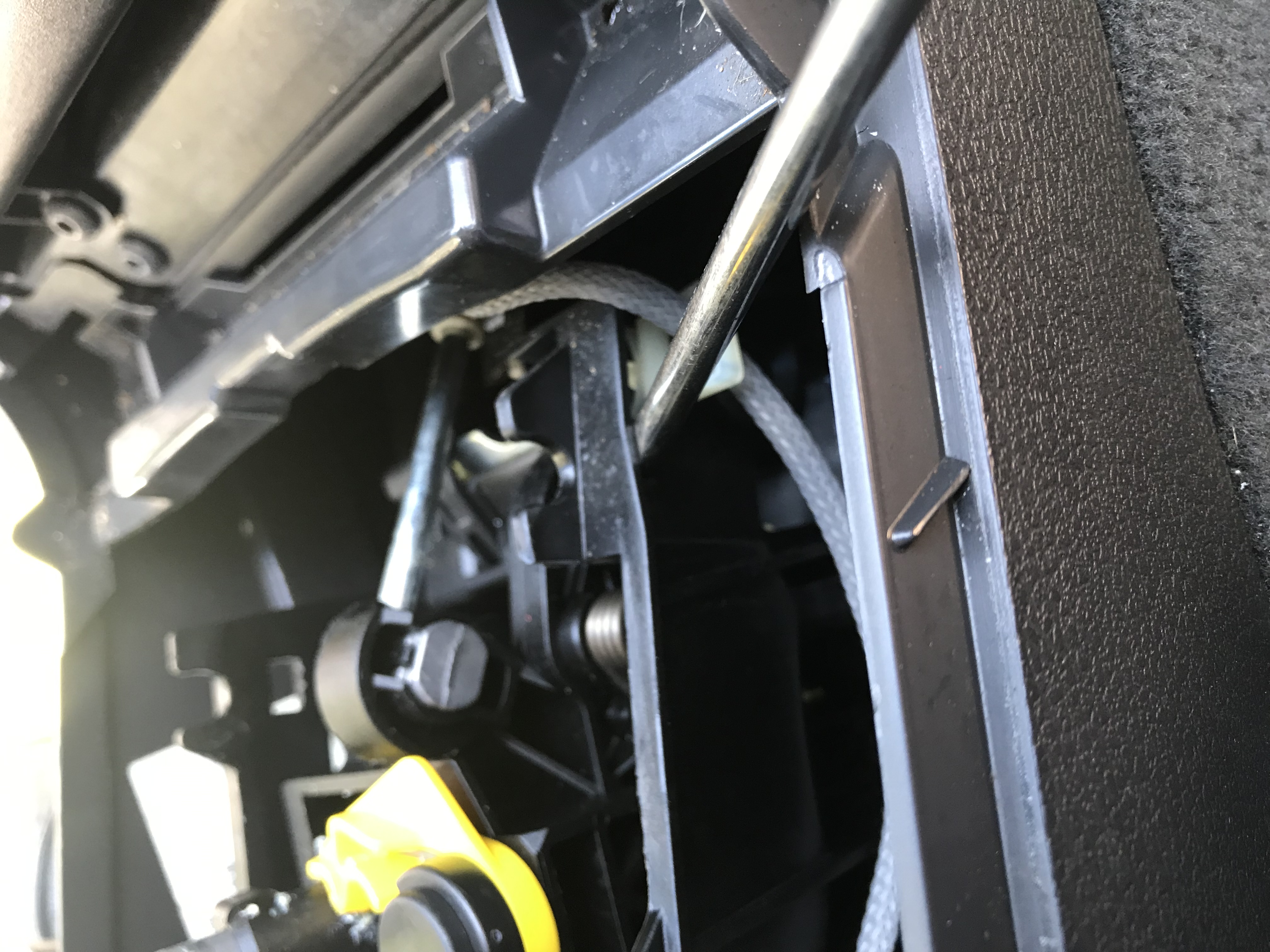 Then reassemble. Word of caution... put it in reverse or neutral before putting the plate back on. I had mine in drive and that plate caught the back spring and pulled it off when I shifted up. And the yellow and black spring assembly flew apart so... be careful there too.