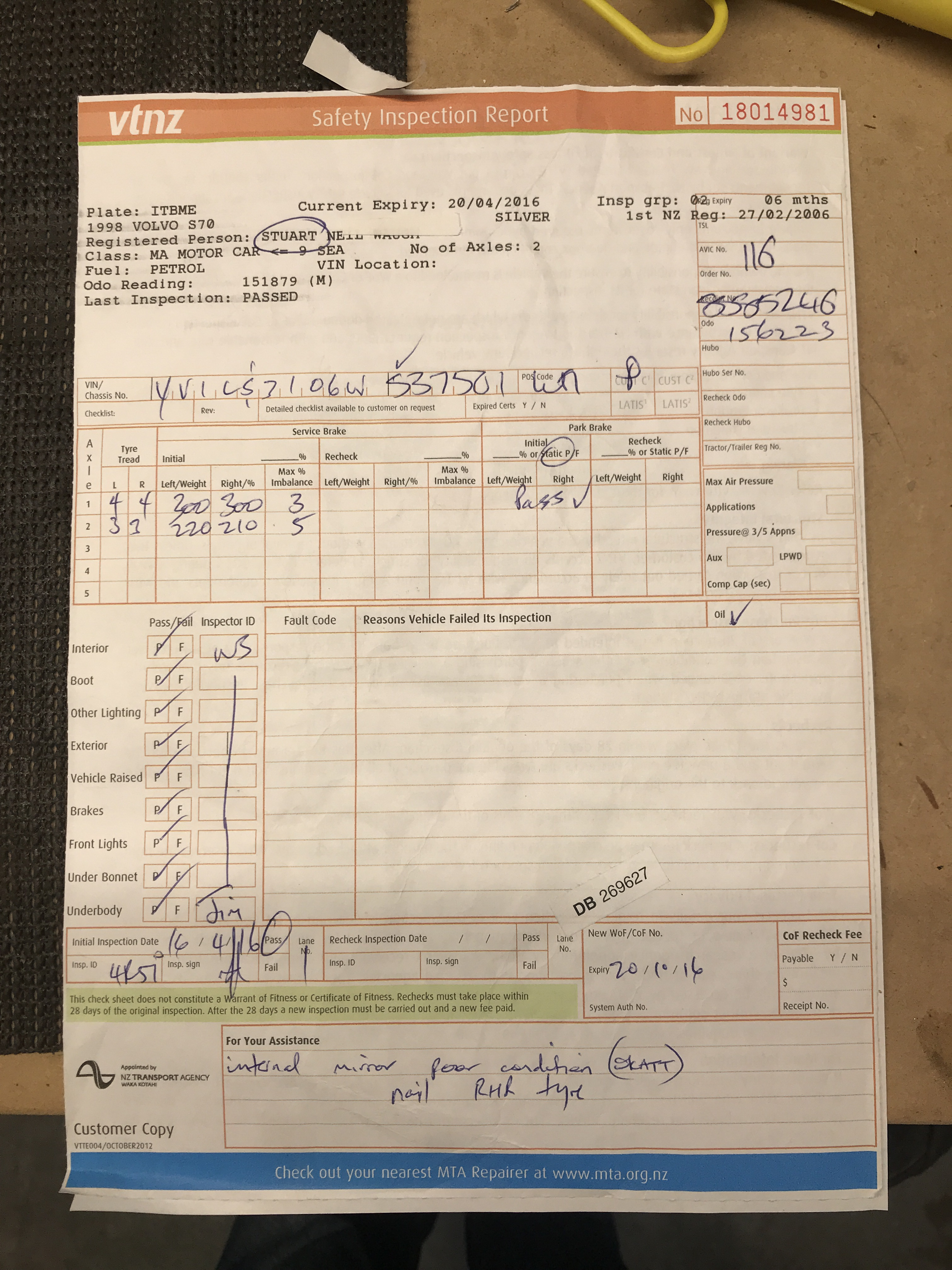 Stu70 wrote: 07 Sep 2019, 01:04 In New Zealand new cars require a yearly check and once a vehicle is over 5 years old it is checked every 6 months - all details are on a database and a sticker is then placed on the windscreen when it is next due. It is illegal to operate a vehicle on the road without a current warrant if fitness (WOF) and yearly registration ( oddly we don’t require a driver to be insured ????)