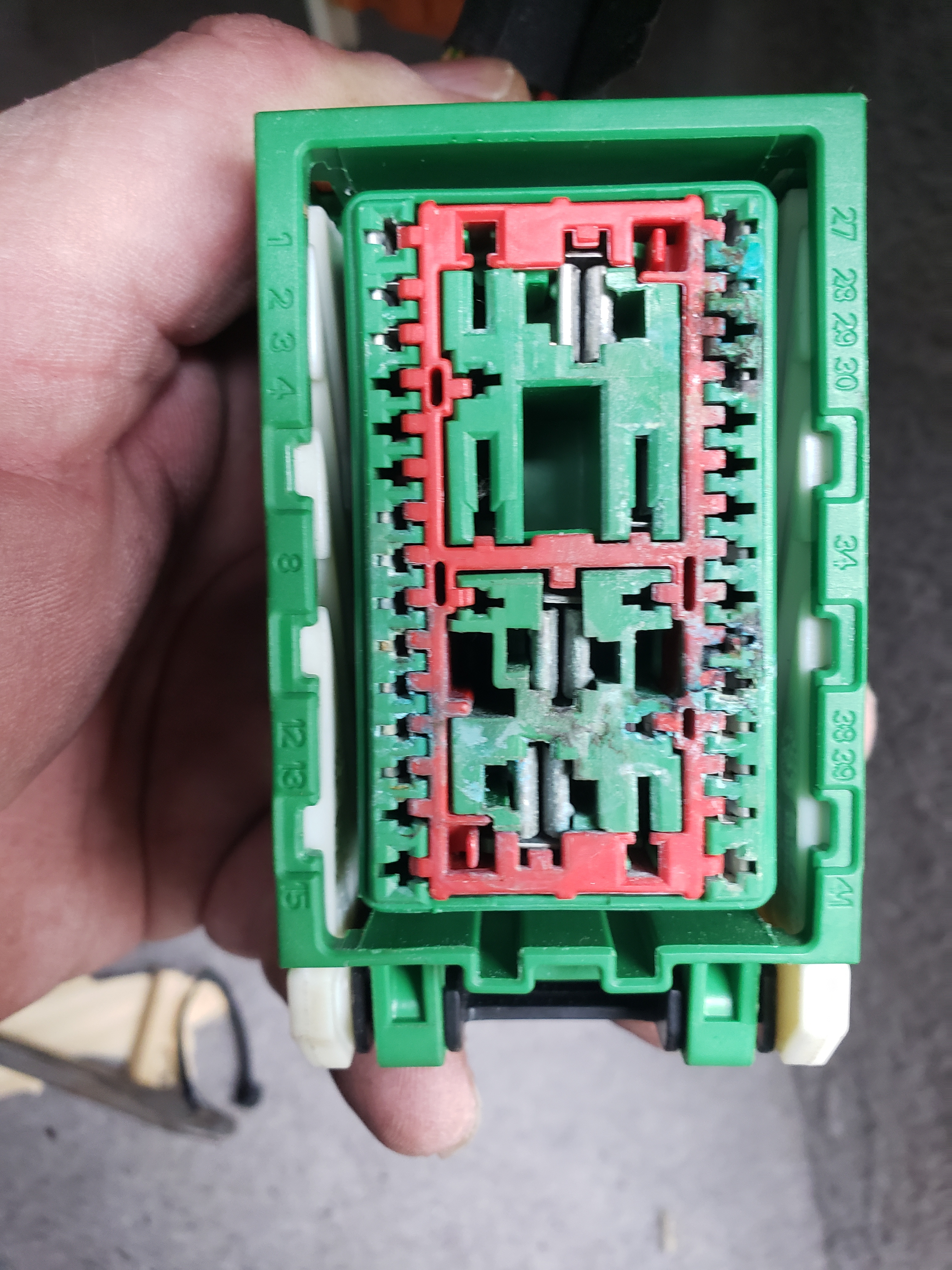 i also had a problem with the cabin fuse box it got wet and got corroded i took it out and cleaned the box as best as i could i also noticed that there were some burn spots on the connector and the plug i was wondering if i can just replace the fuse box with another used one and do i have to reprogram the new fuse box .....Image