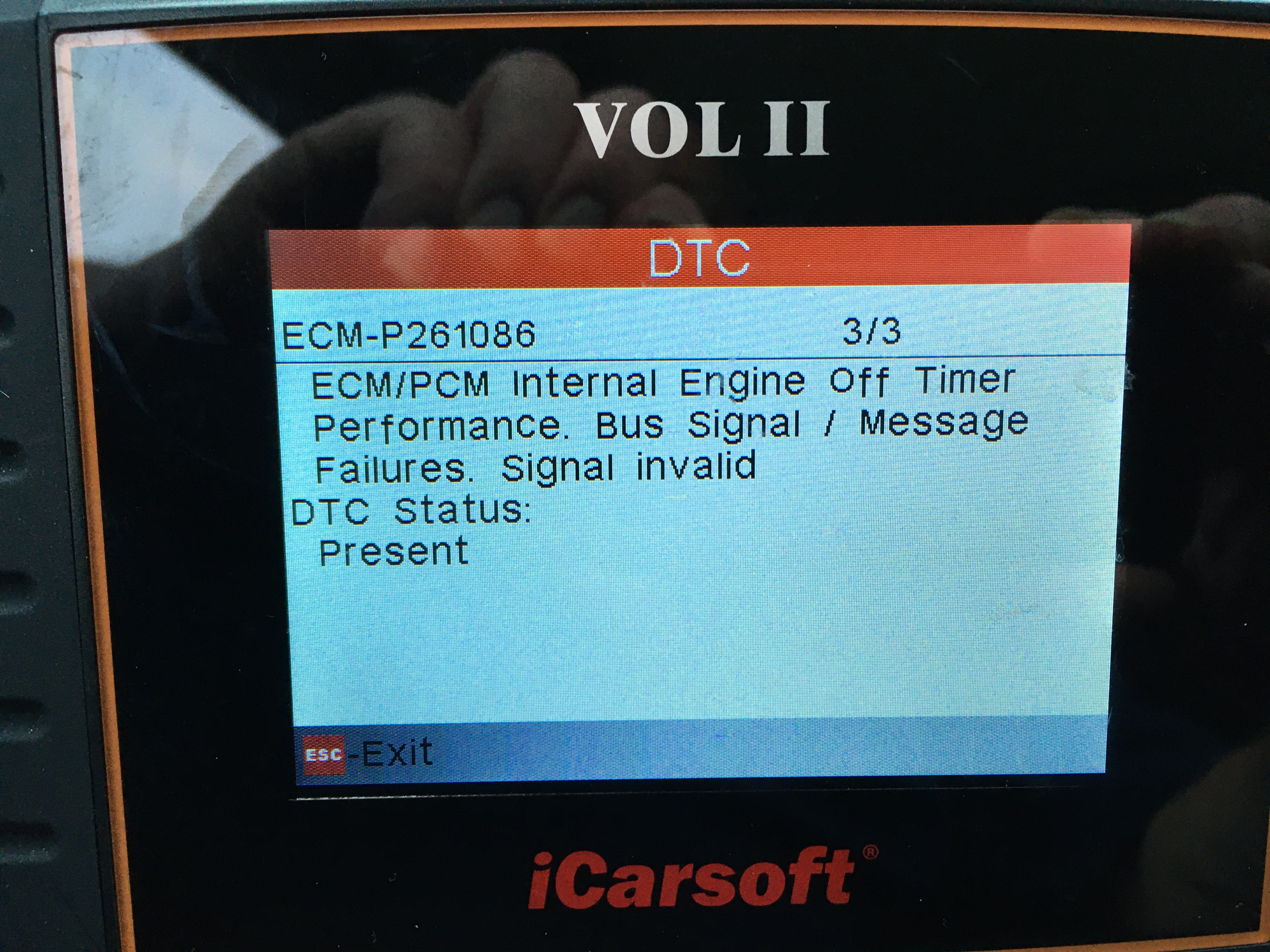 P261086 ECM/PCM Internal Engine Off Timer Performance. Bus Signal / Message Failures. Signal Invalid