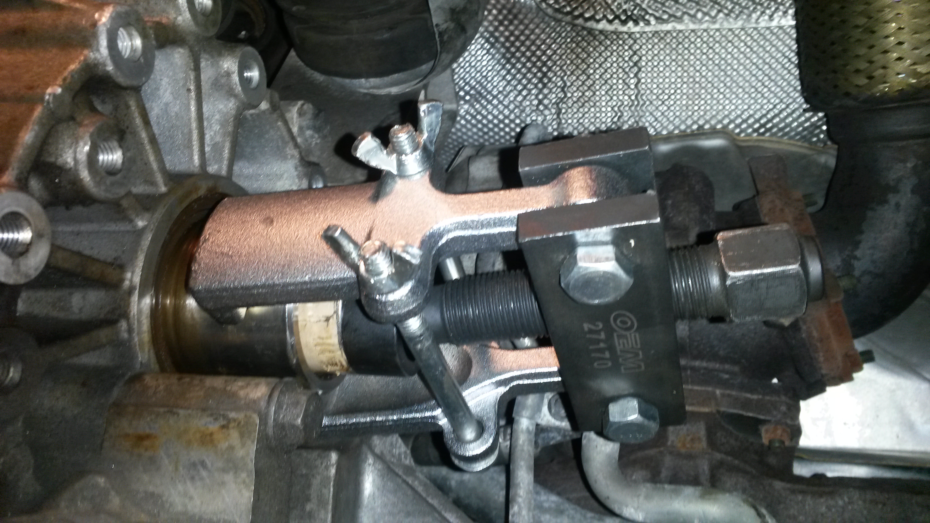 Here is a picture of my last attempt with the puller using an air hammer ratchet with no success.