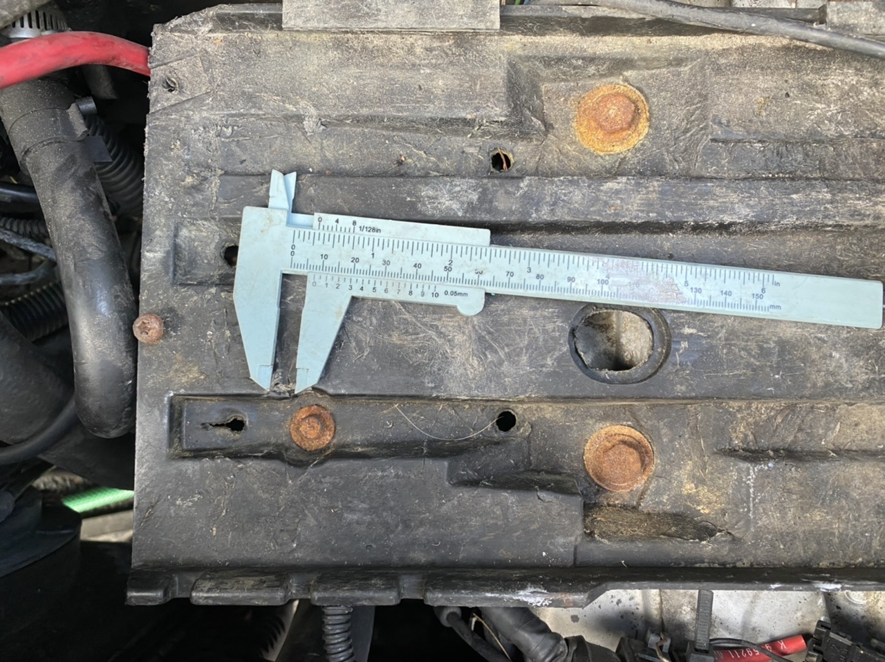 No, sir, that bolt is one of the two bolts the secure the battery tray. The bolt Im trying to find is smaller (definitely smaller than M12, but cant tell if M10 or M8 as my bolts head has rusted away), and is the only other bolt in the battery tray. It sits further to the US passenger side of the engine bay on the tray, in the central groove. I'll grab a picture when British summer stops living up to its name.