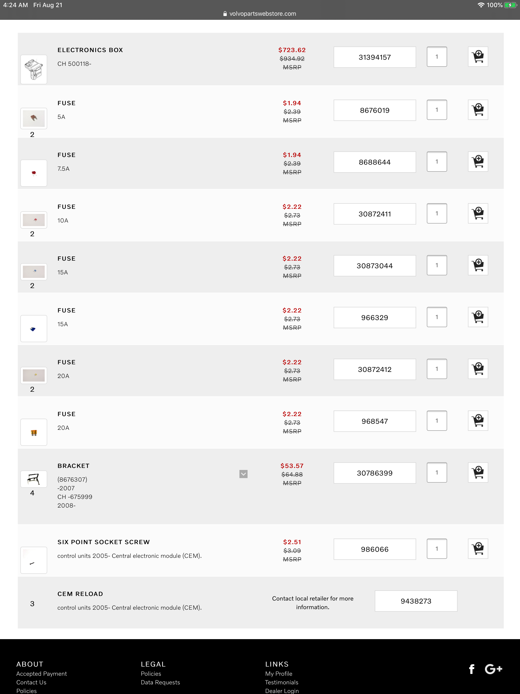 An interesting note. In the boneyard I visited today, more than 50% of the Volvos had been stripped of all electronics. By that, I mean "everything". Fuse boxes, modules, switches, etc., etc.