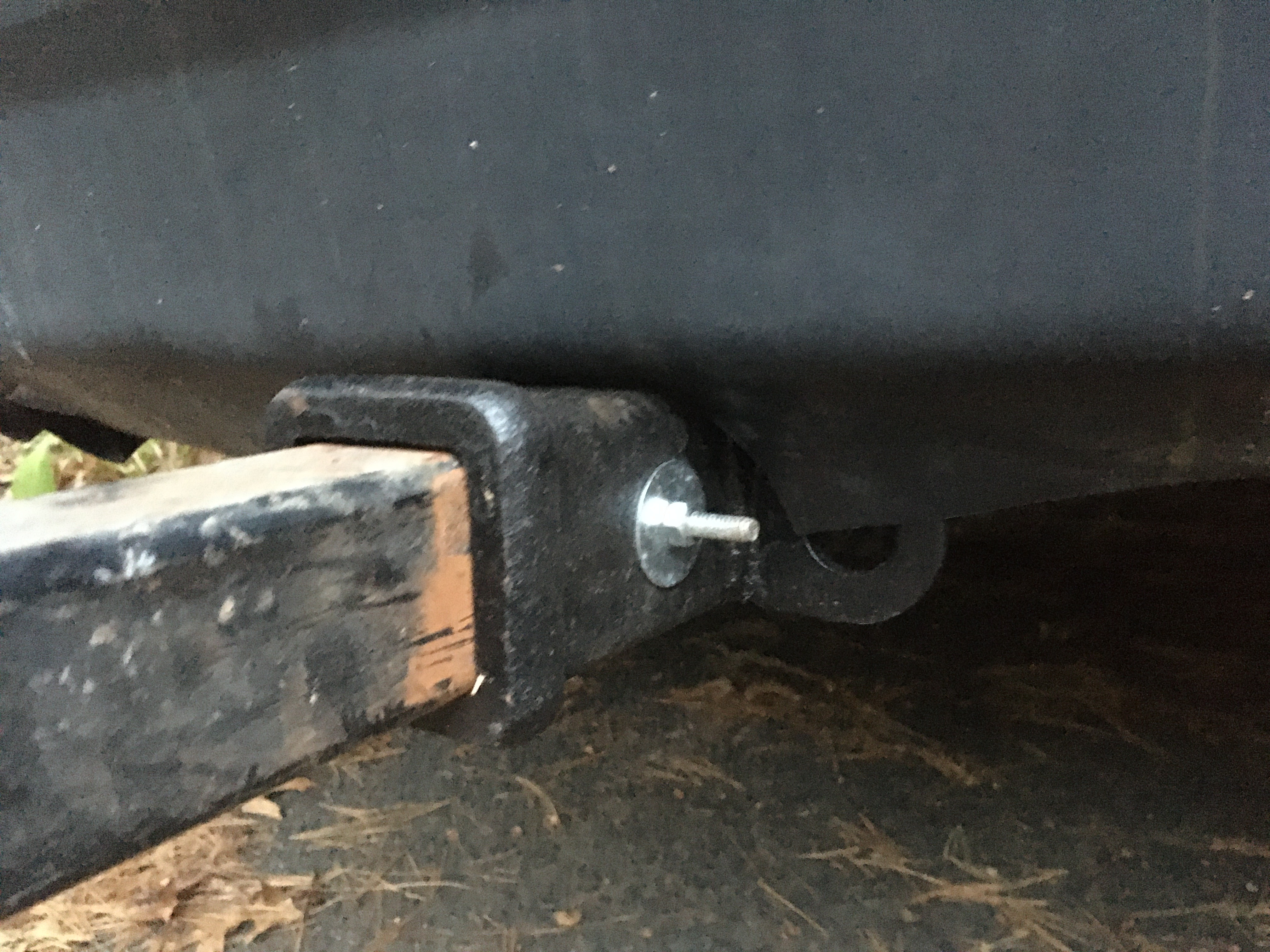 That bolt and fender washer looks scary. Hitch pin or 5/8 bolt 3 inches long with nut and lock washer are secure.