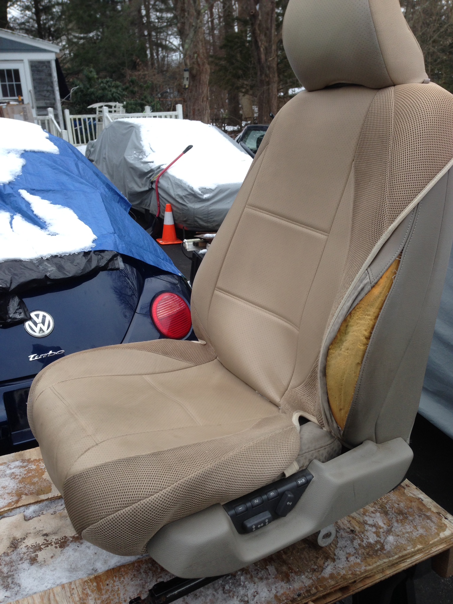 My favorite guy in NC got me some C70 seat skins in oak, and Evita got some new skins!