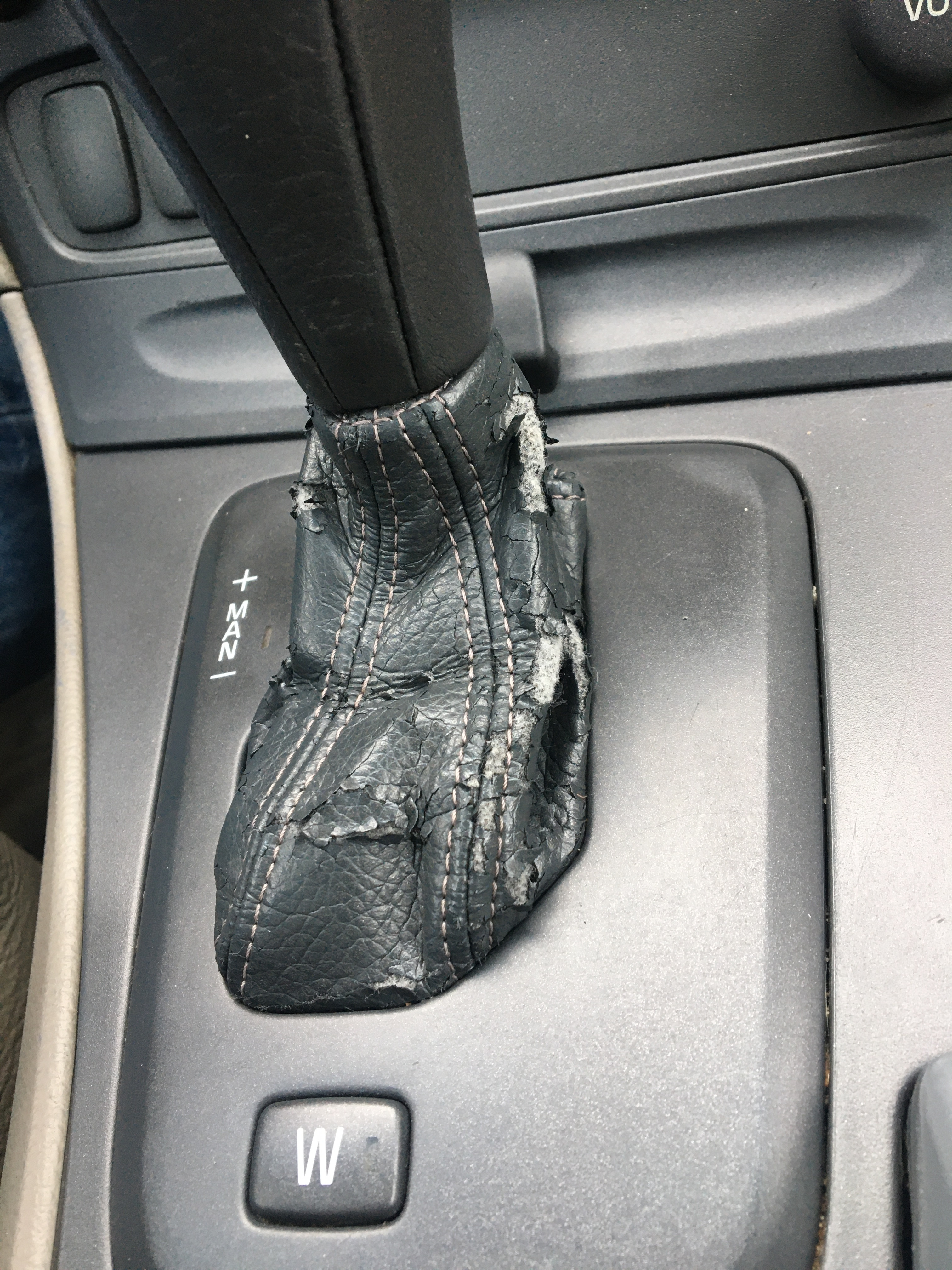 Does anyone know how to fix this or make it look better? The fake leather is peeling off my shift boot. I don’t want to buy a whole part for it. I can’t figure out how to get the knob off to separate the boot.