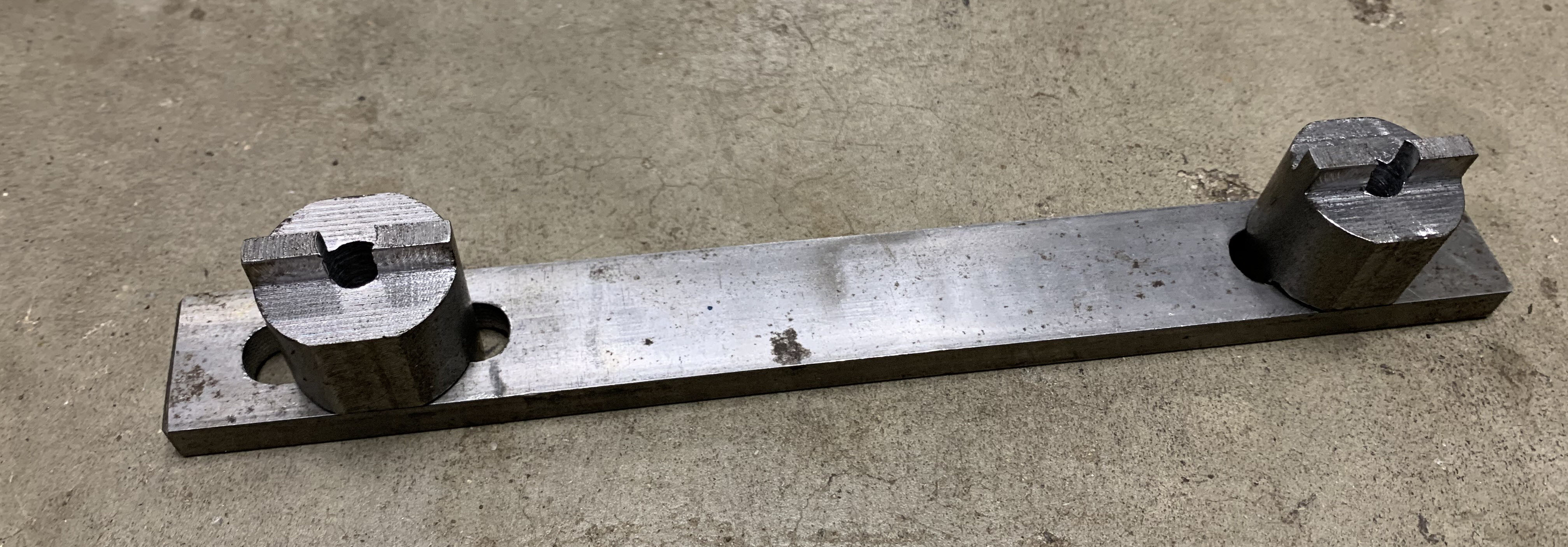 I seriously doubt even steel flat stock would work with over 85 ft-lbs of torque. I made mine out of tool steel on lathe and then milled the slots. I did not even need the bolt to hold in place since I could not find 7mm bolt anywhere.