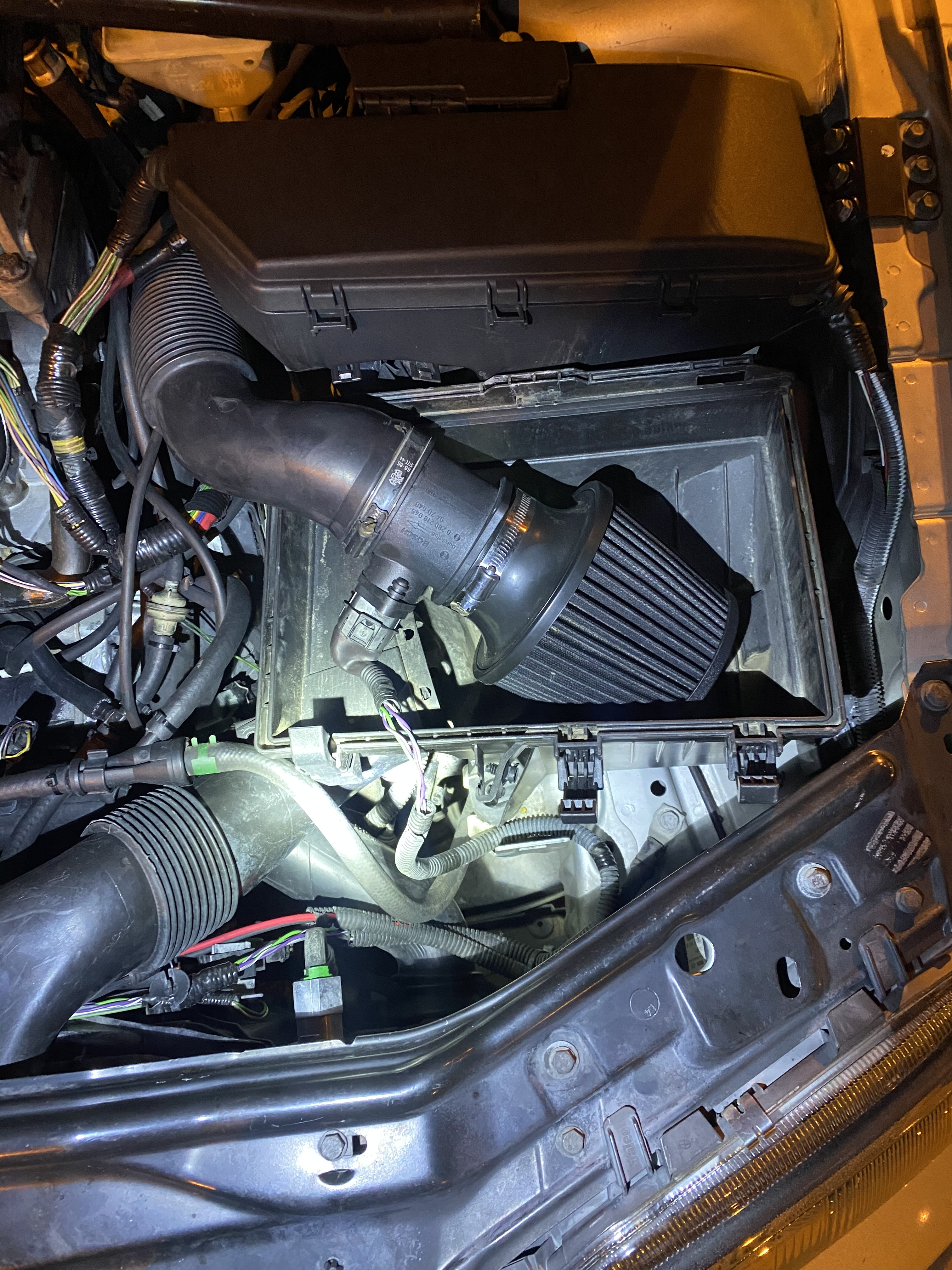After doing much reading I believe my Mass air flow has gone out on my v70. When i got the car it had this filter put on by the lady's Grandson a week before the trans went out. I drove it didnt pay any mind tell the last couple of HOT (99 degree) days here in Arkansas and the car been acting funny. I'm thinking sucking in all that hot engine killed the factory 400K Mass air flow. Getting a new Bosch sensor and actual lid so it can get air in how it should and hope for the best. Just wanted to share incase this happens to anyone else!