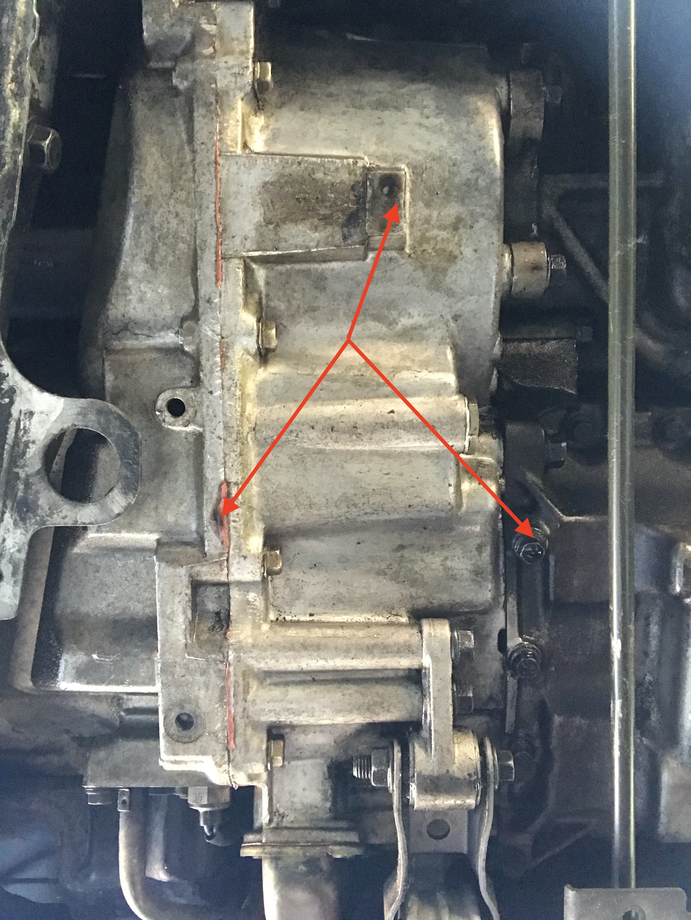 As shown in photo, the weep hole between the transmission and engine is dry; I've never seen leaks there.