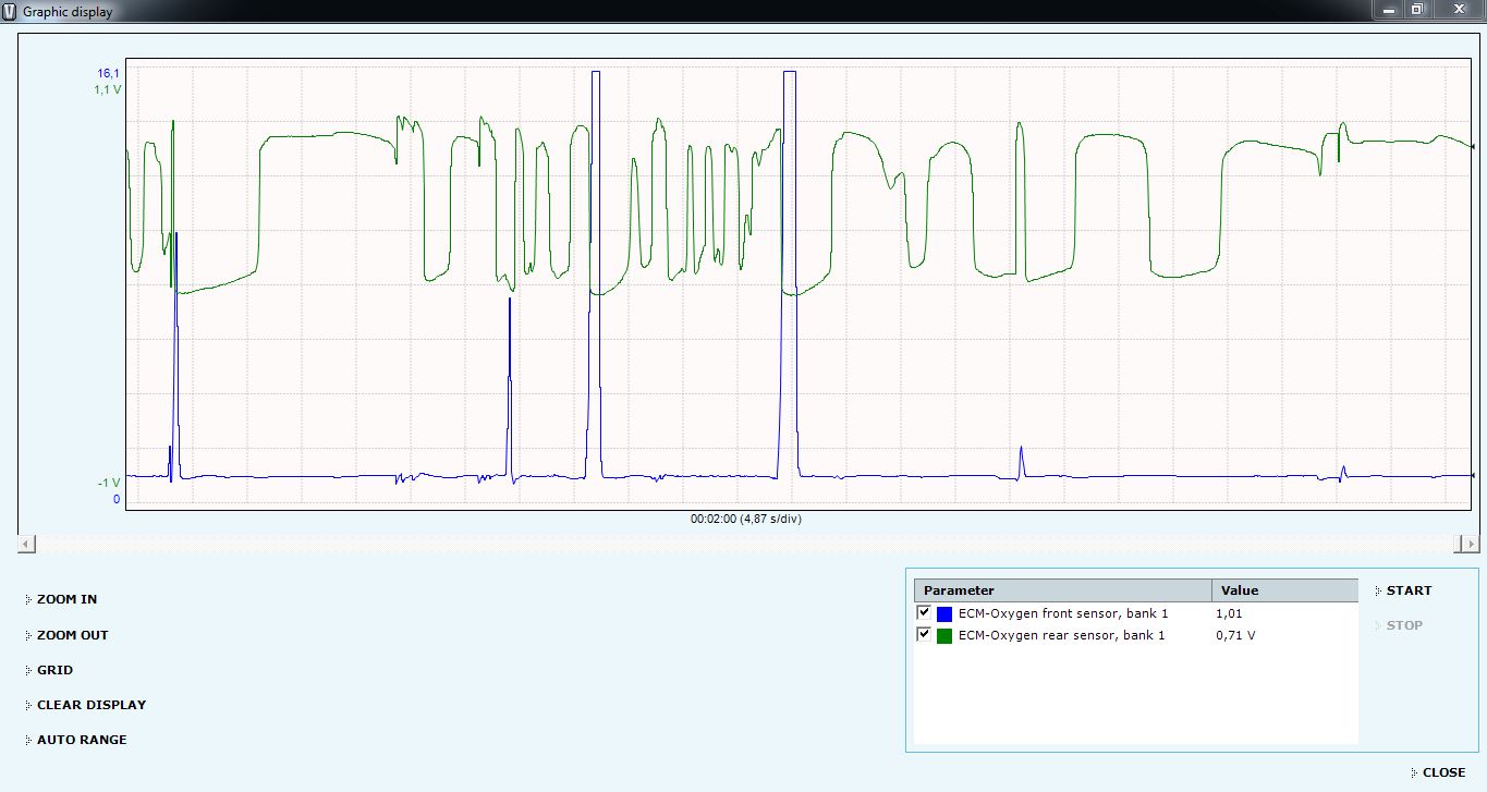Hello all, long time lurker, first time poster. I was hunting some misfiring and high STFTproblrms on my 2.5t, which turned out to be melted tip on nr.3 spark plug(with only 3K km on it), and after afresh set of plugs things got better, but I still had fluctuations in fuel trim (it would go from 6% in the morning to -6 in the afternoon, with STFT going all the way to 25% at idle). Google has led me to possible O2 sensor or catalyst problem. I fired up Vida and noticed that my upstream sensor stays flatline, while downstream makes a wawe pattern(as far as I found online it should be opposite). I have added schreenshots of graphs of a short ride to give you a example. Car has new PCV, new coils,new plugs, service. It has LPG installed, but readings are the same no matter which fuel I use. Any help would be greatly appreciated