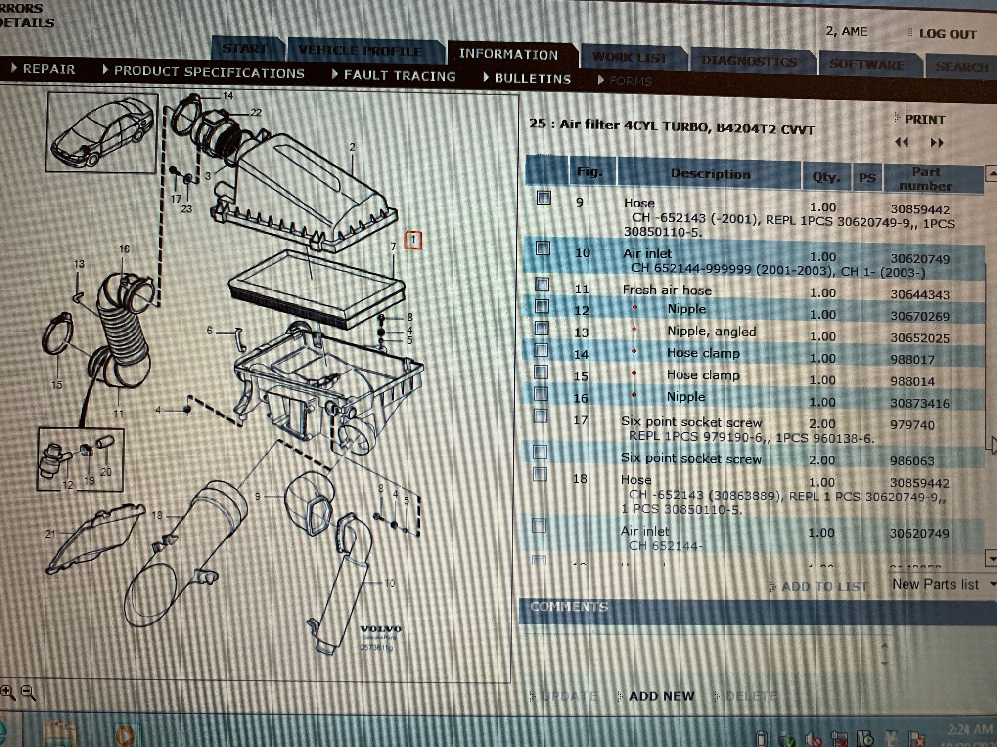 Below is what I found from looking online but I'm not sure what I need to order. I will also post images of what VIDA said when I went into the parts look up. I think in V40 2001 the configuration was a little bit different and that's why I'm being thrown off.