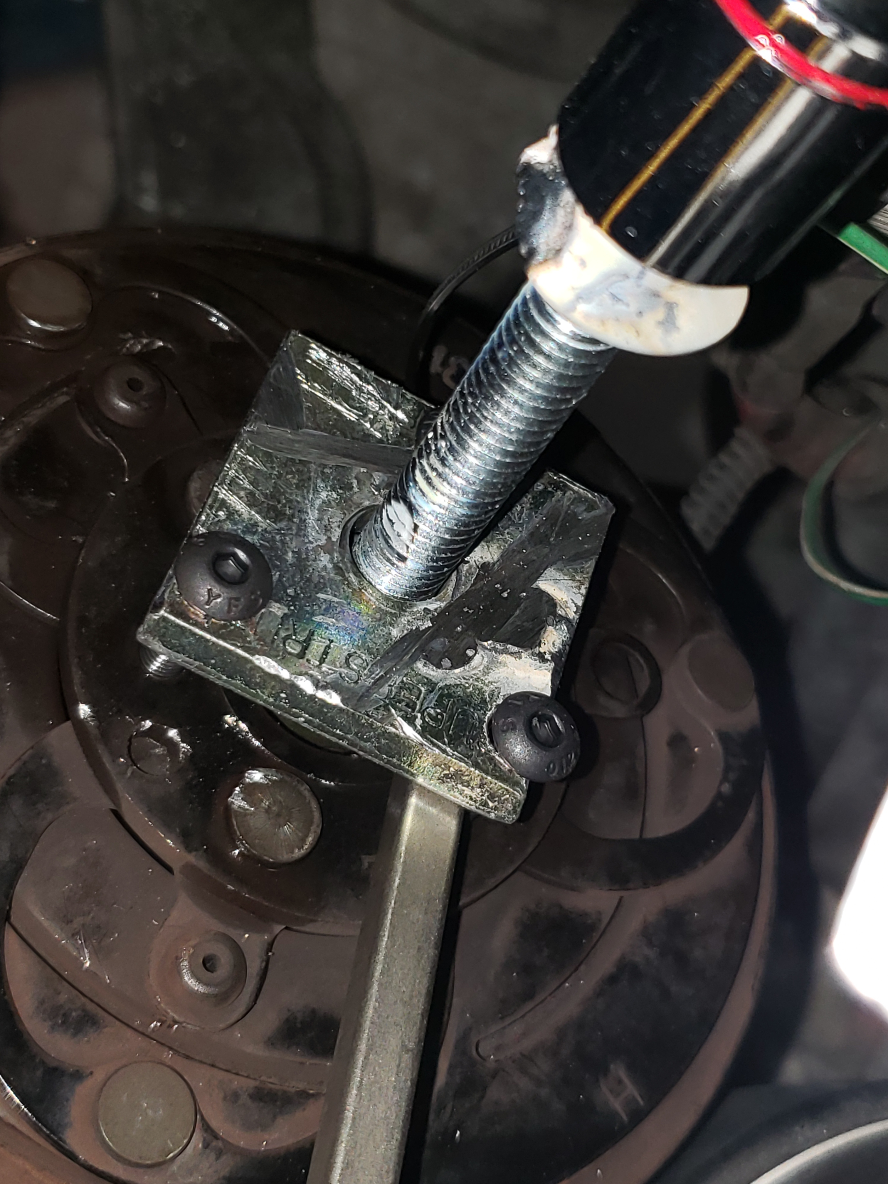 I'm halfway through control arm replacements on my xc90 and FCP sent me 2 left arms. So I'm waiting on a right side arms. In the mean time I've replaced the left control arm, ball joints and sway bar endlink. End project is fixing the AC clutch gap. Mine is at 0.7mm! I'm trying to remove the clutch. I've welded up a puller of sorts with 3 M5 screws into the face of the clutch. My center bolt is pushing against the 10mm clutch bolt that is unscrewed about 3-4mm. Im getting nowhere so far. For now its soaking in penetrant oil.