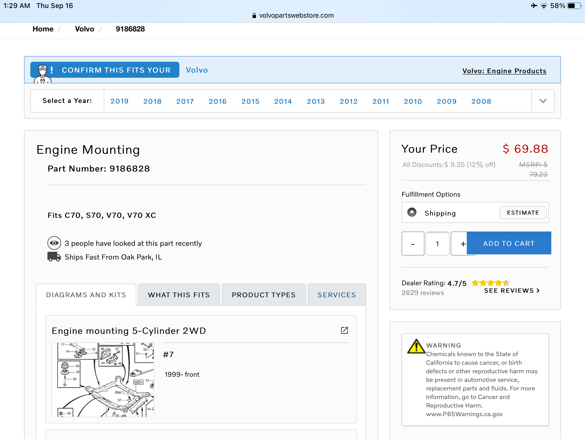 - Year and Model: 99: V70s S70s,05 V70