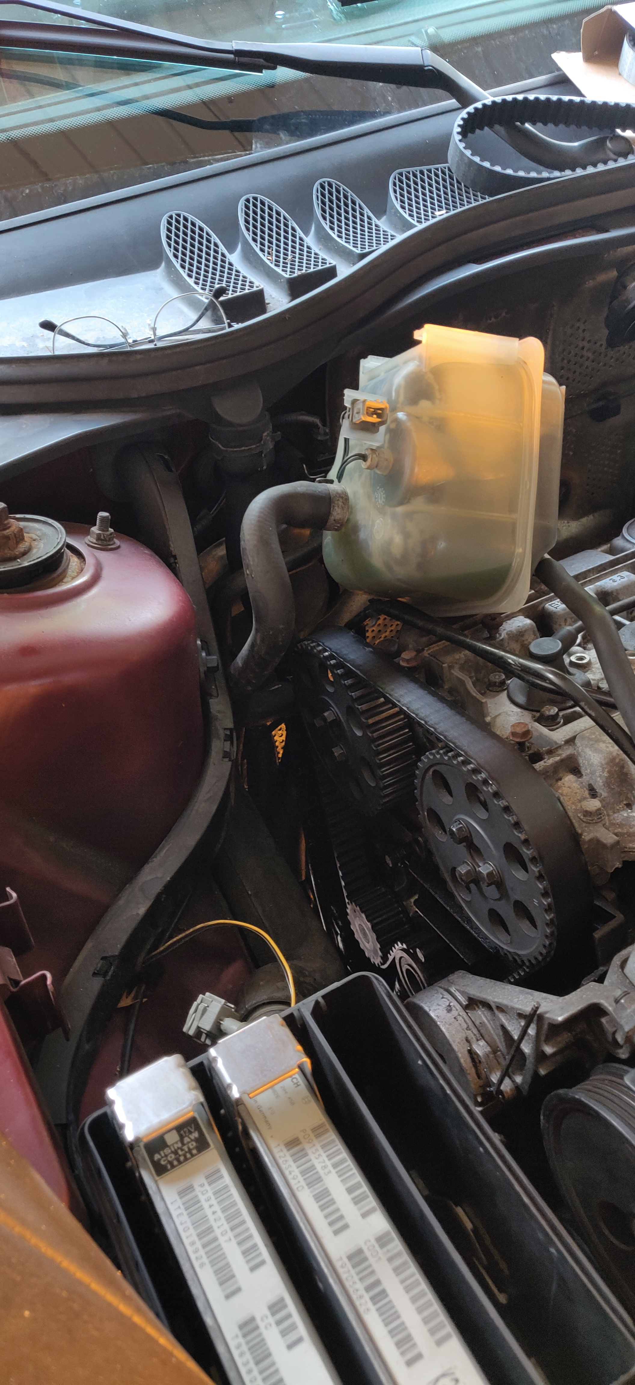 New belt, and water pump, and fix exhaust camshaft seal leak....it's a big one.