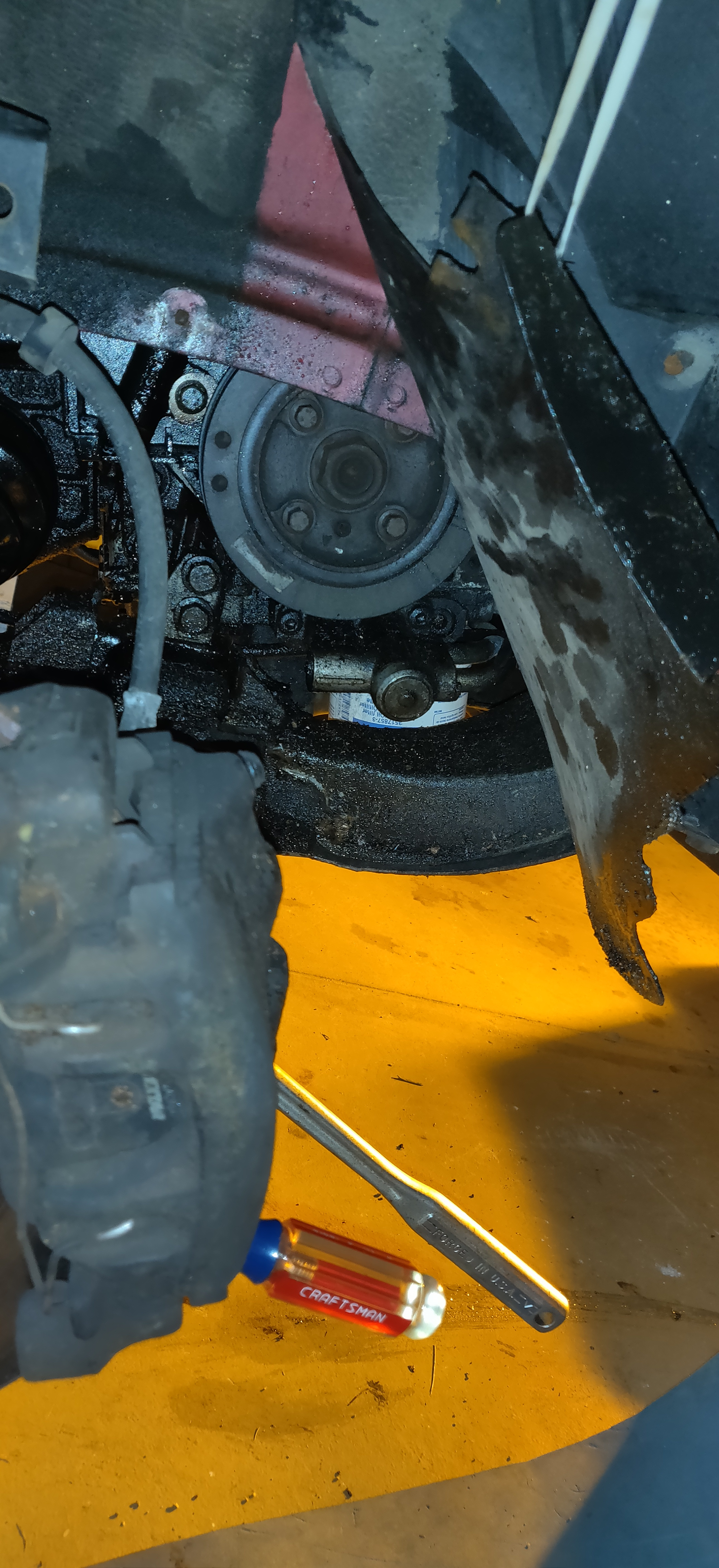 Pass side cover pulled back (doing brakes too)