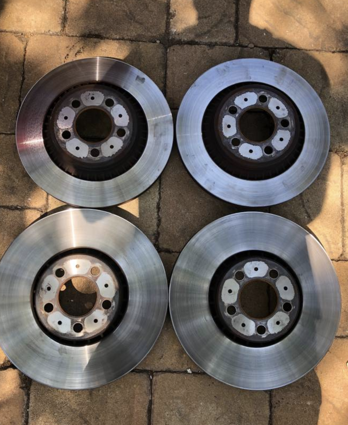 Rotors are in good condition with no warping. They have minor edge lip and normal surface wear. Well within tolerance and lots of miles left. Came from my running and driving Volvo.