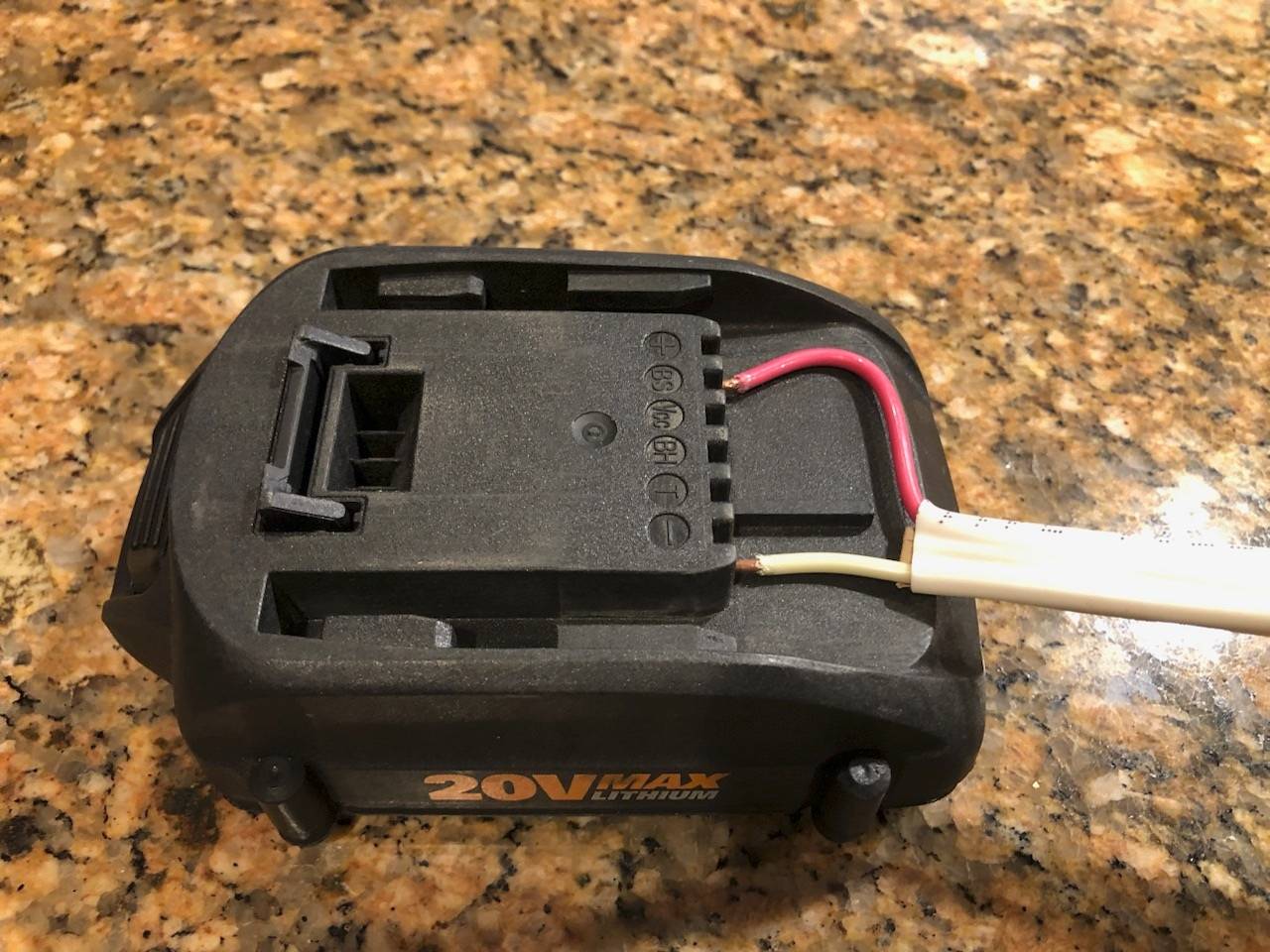 Saw something similar on Youtube. Since it only came with one battery I tried another brand with higher voltage. Tapped the battery wire a couple of time and then held for 5 or more minutes. Did this several times till the Milwaukee charger started to charge the battery. Haven't put it to use so won't know if the battery life is short but for now it's full bars.