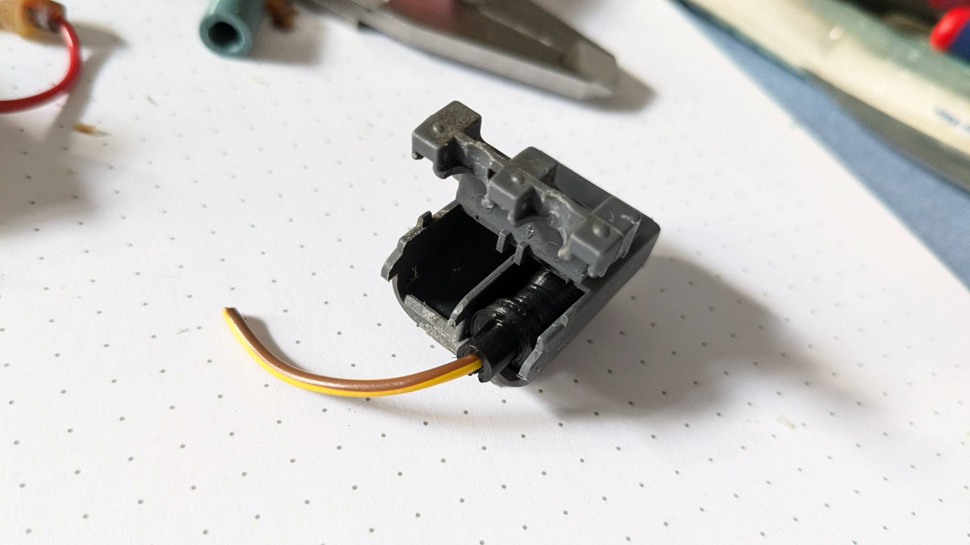 The new seal is designed in a way that it can be installed on the already existing bullet connector. It has a split halfway through through which the connector can be inserted. The split is then glued shut with CA glue. (The contrast makes it really hard to shoot a good picture, but the split is there.)