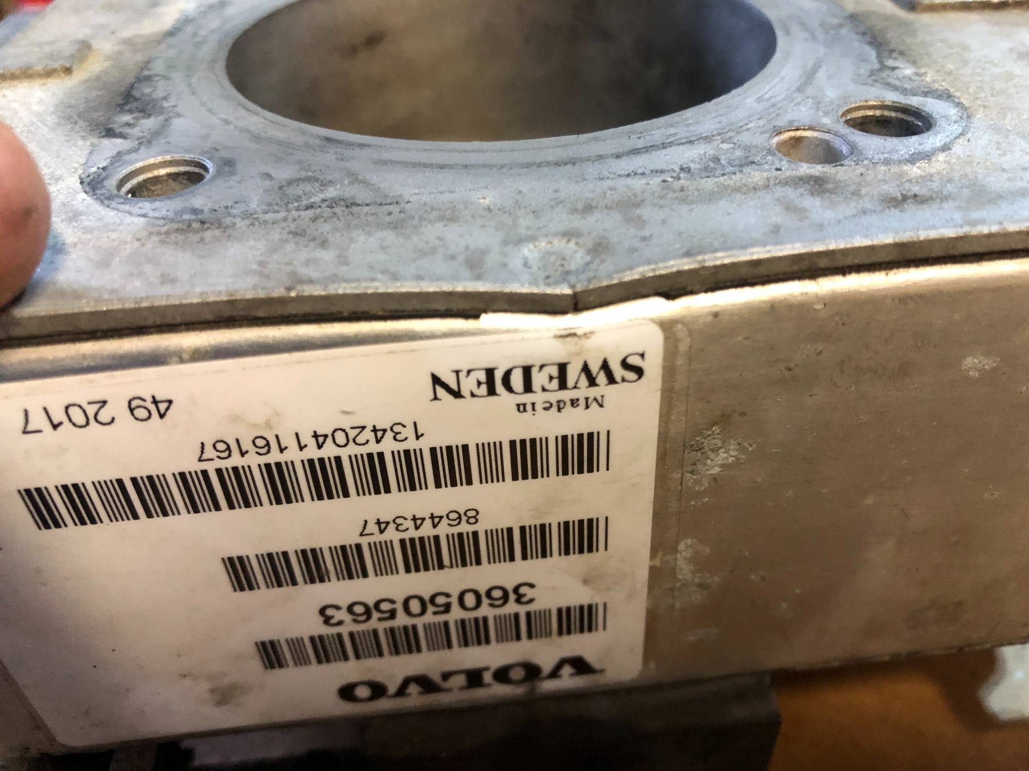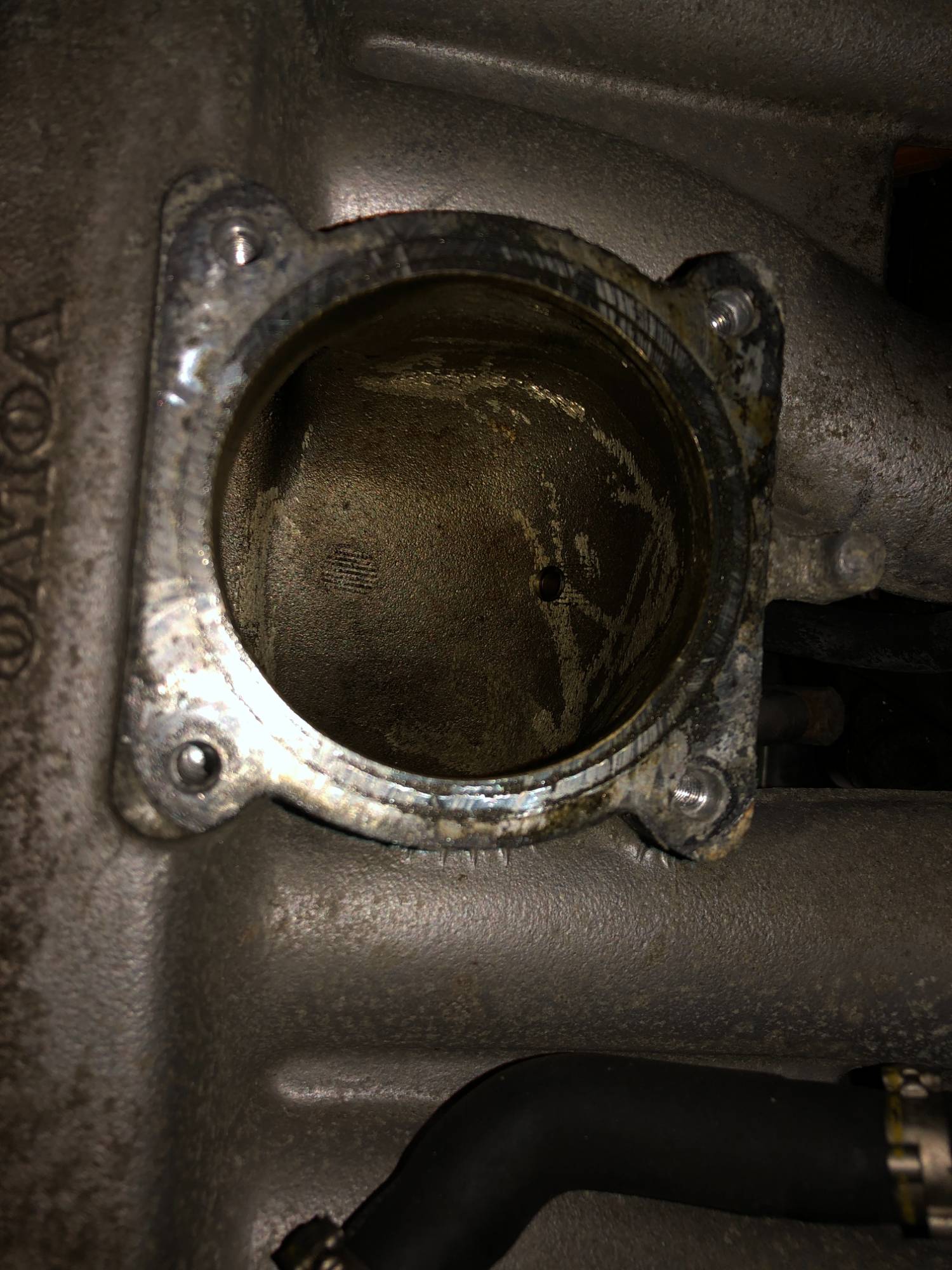 I thought the ETM contact-style sensor would be the likely issue, but when I took it out, I found the ETM was a white label from 2017. Looking closer, I found a dent and a crack on the mating side. Under the intake manifold there is a corresponding casting protrusion. (pix)