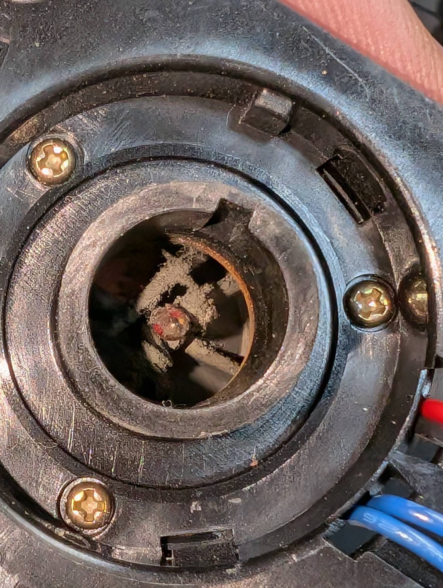 After this I then further cleaned the units with IPA/Rubbing alcohol on a cotton bud and they came up even cleaner. That little red bead is what senses the cabin temperature for each side control on the ECC. I have seen the fans so dirty they can't turn at all!
