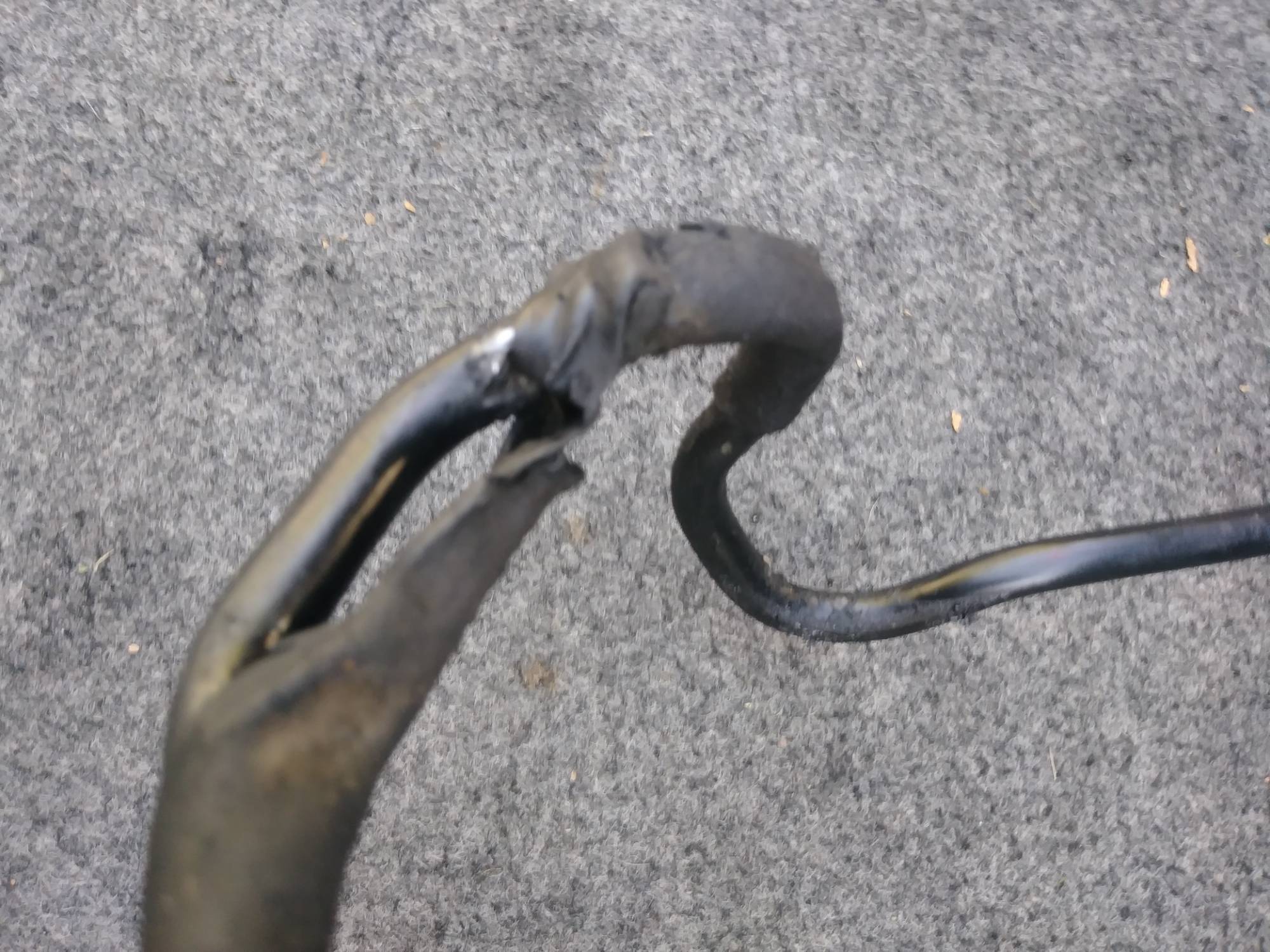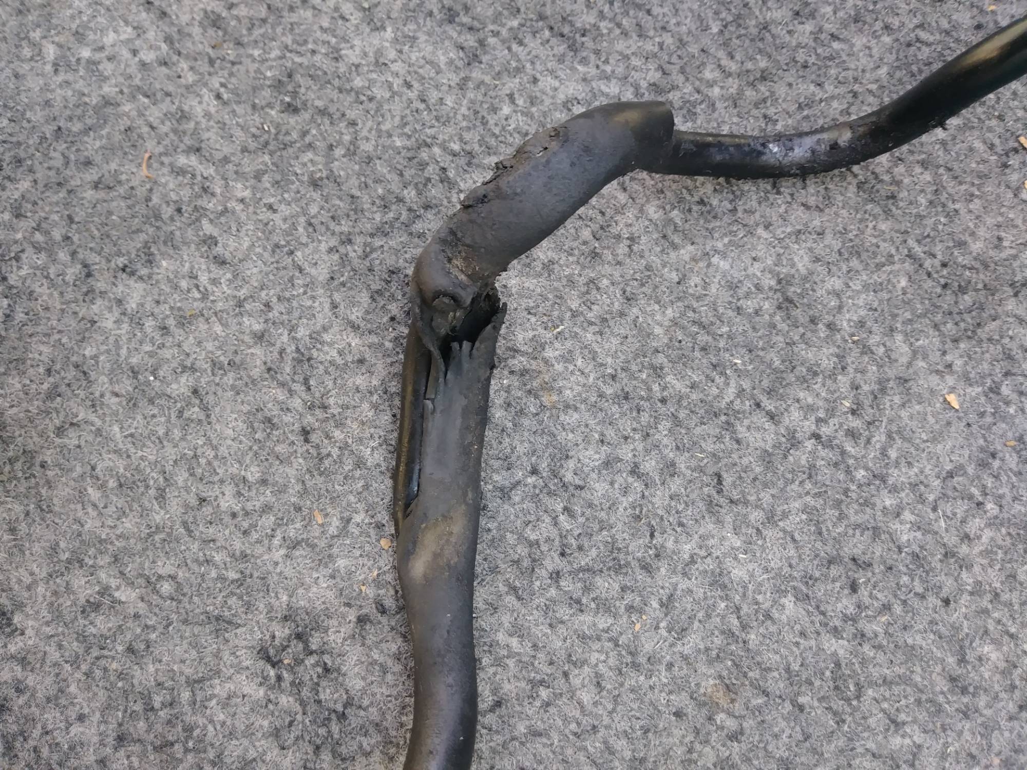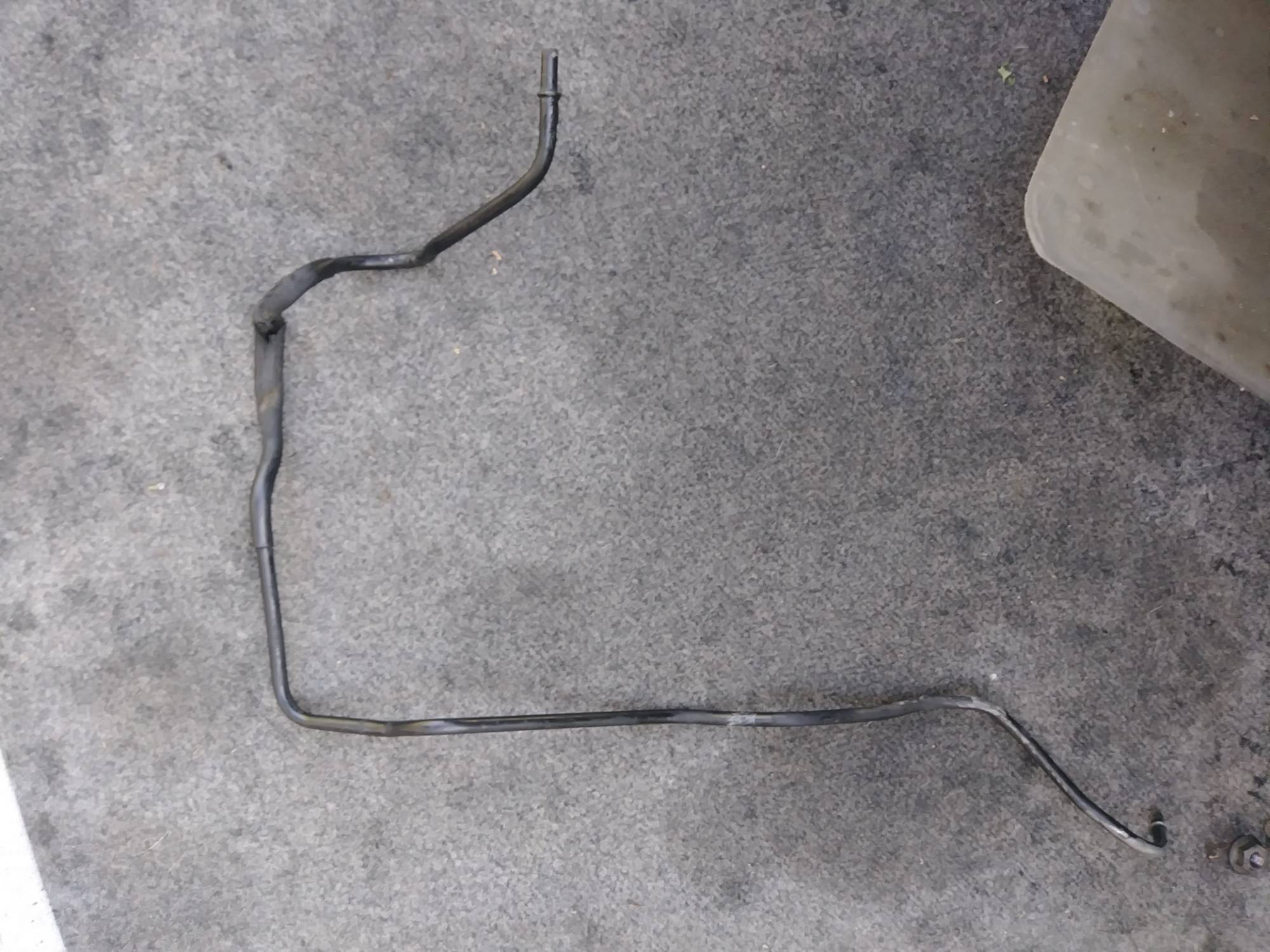 Here's the damaged fuel line. I plugged one end and blew air through the other and definite air leak at the crushed area.