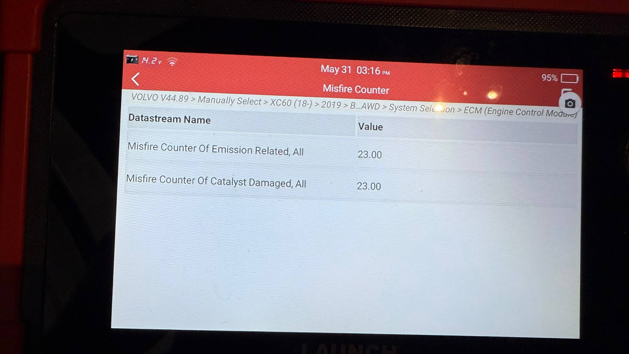 Recently, I was playing with my Launch diag (looking for some updates for Volvo) and I found a pending DTC: