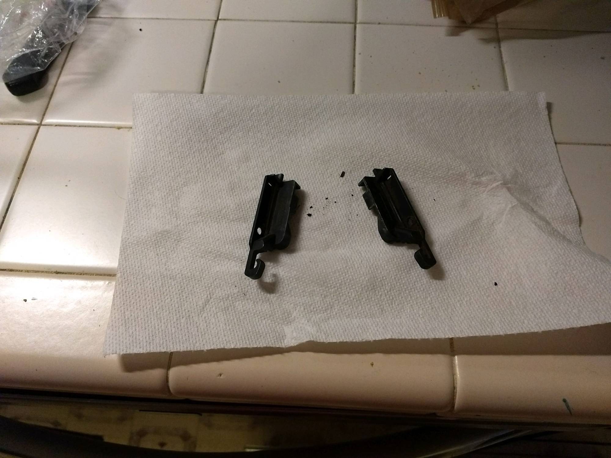 EDIT:to add photo taken from similar post. On mine one of these is in place, the other is still attached to the wind deflector arm, but no longer attached to the roof. If you look closely you can see the tiny holes where rubber pokes through when it is seated on the roof, and might be able to see the grooves on the side that engage with the glass lift arm. I really don't care to use the roof open other than to release heat and then close it back up for driving so I don't care- if wind deflector could be totally removed and roof still function that would be great.