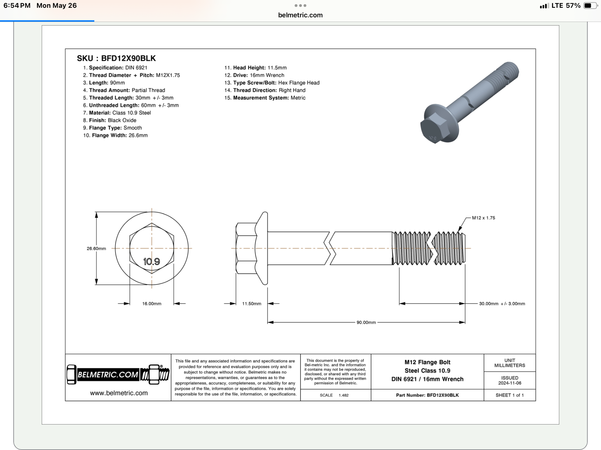 Note, 90mm to the bottom of the washer, NOT the underside of the head!
