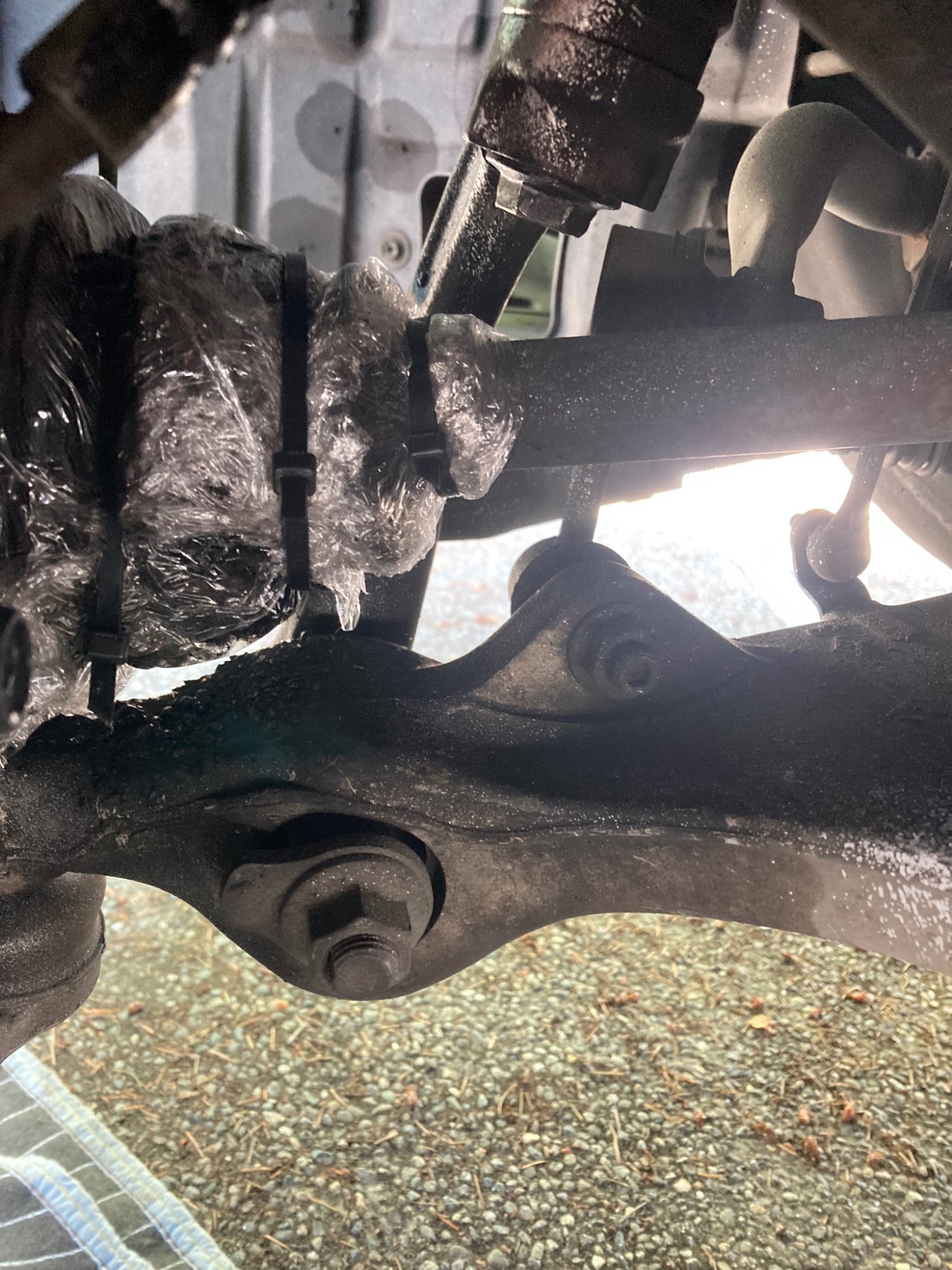 Looks bad, but works in a pinch for grease control. I have my Lexus GS (that’s the pic) wrapped this way now; it has been for a few weeks until I could get to the axle in this coming week:
