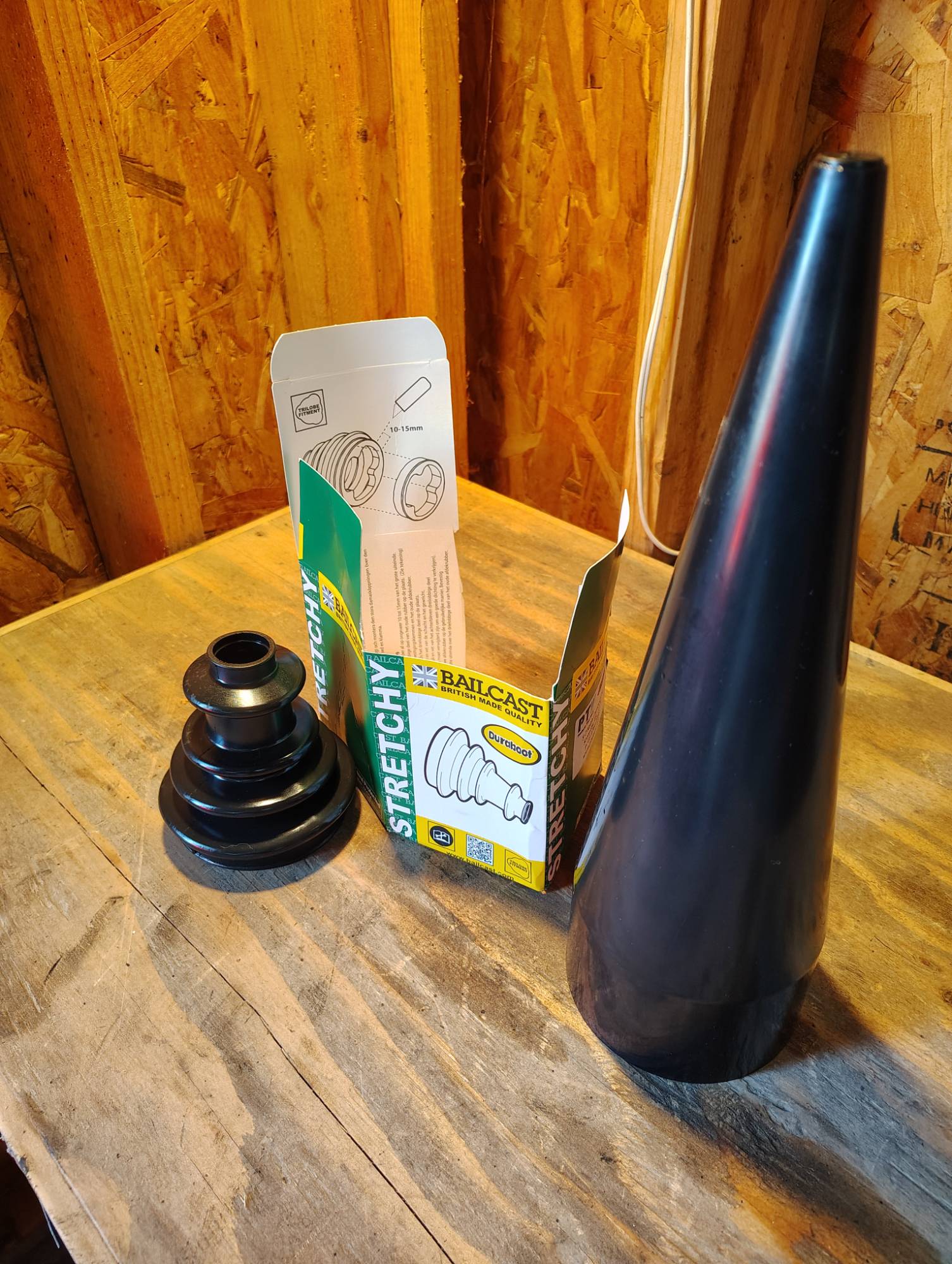 I measured everything, and selected the DCB300 stretch boot for the inner RHS. But it was obvious from the start that the stretch boot was going to be a real bitch to get over the installation cone. So....