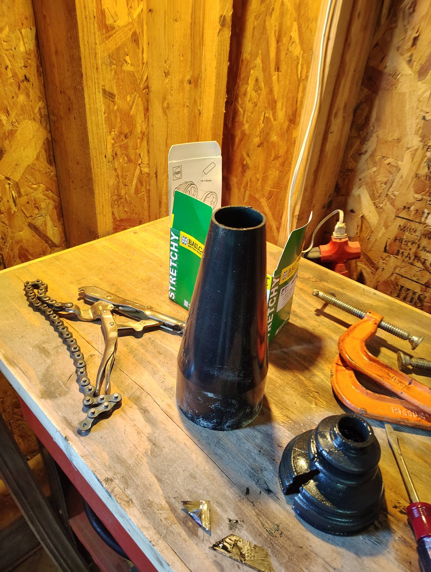 The cone is designed to be used from the outer end of the axle, not the inner, so I had to cut it to fit over the axle so I could do the inner boot.