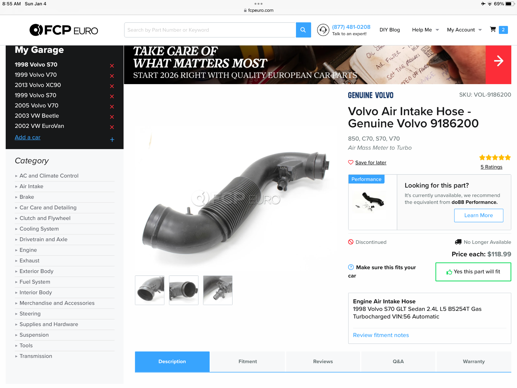 - Year and Model: 2000 V70 R