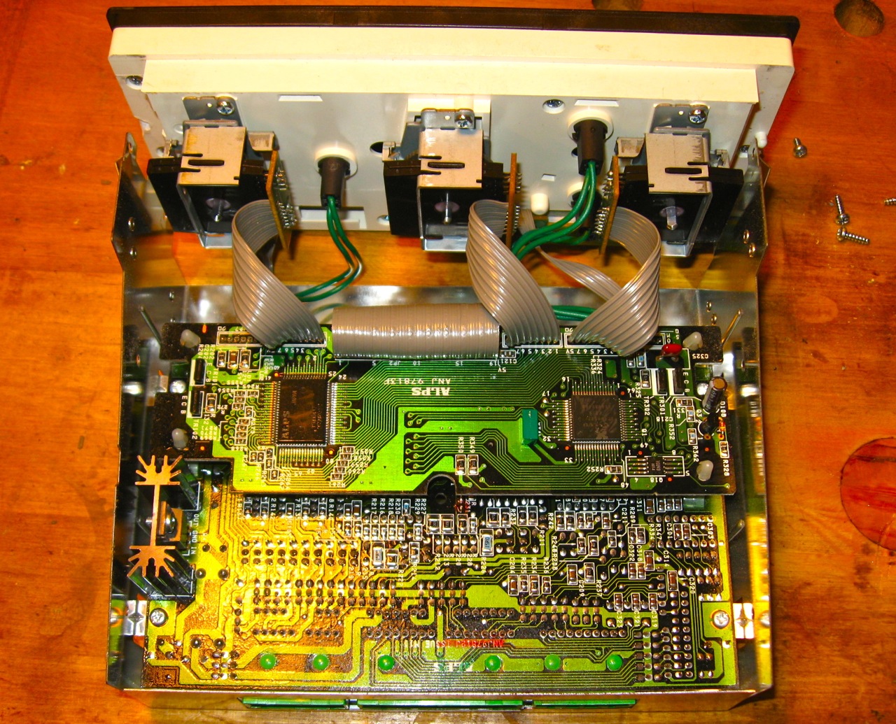 After clearing the ECC codes (still only 1-4-1), pulling the ECC control unit from the center console and removing the rear metal case from the faceplate of the control unit, I did indeed get access to the switches controlling the driver- and passenger-side vents. Since I was planning to replace the unit anyhow, I was feeling a little more fearless about mucking with the innards.