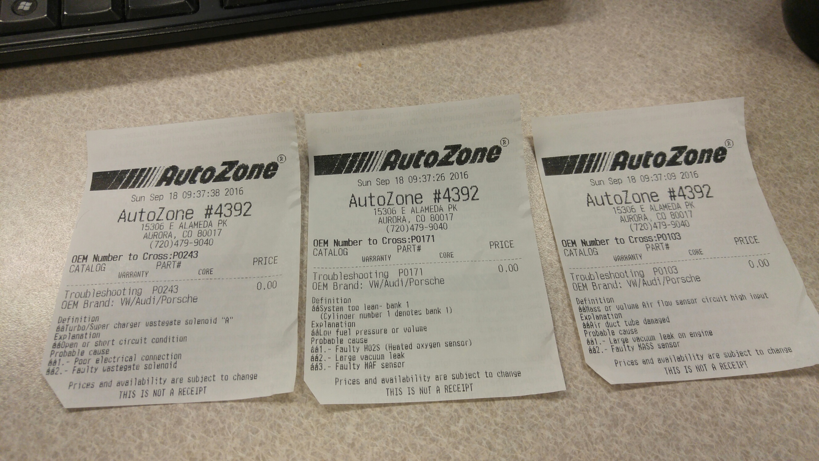 Bad MAF sensor or vacuum leak for P0171 and P0103.