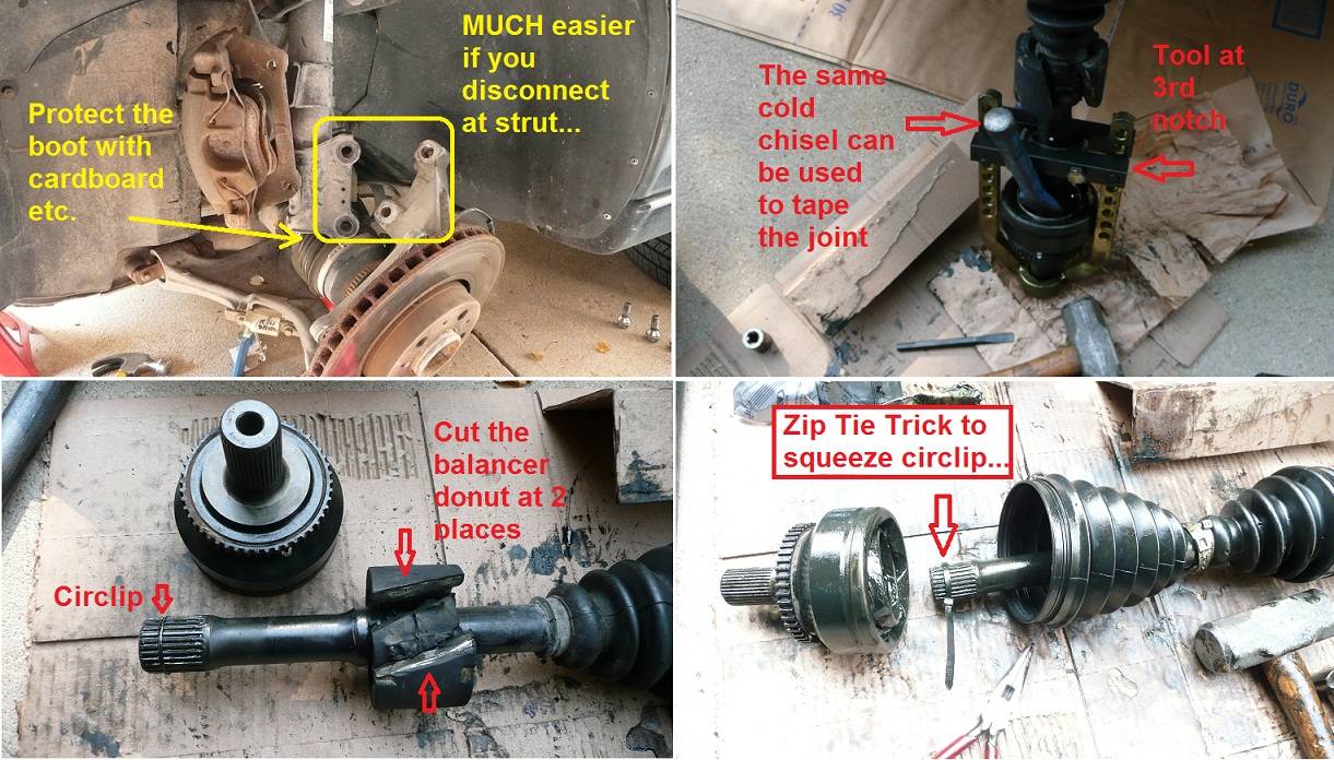 - Once the strut is loose, the axle comes out nicely. During installation, protect the OUTER boot with cardboard