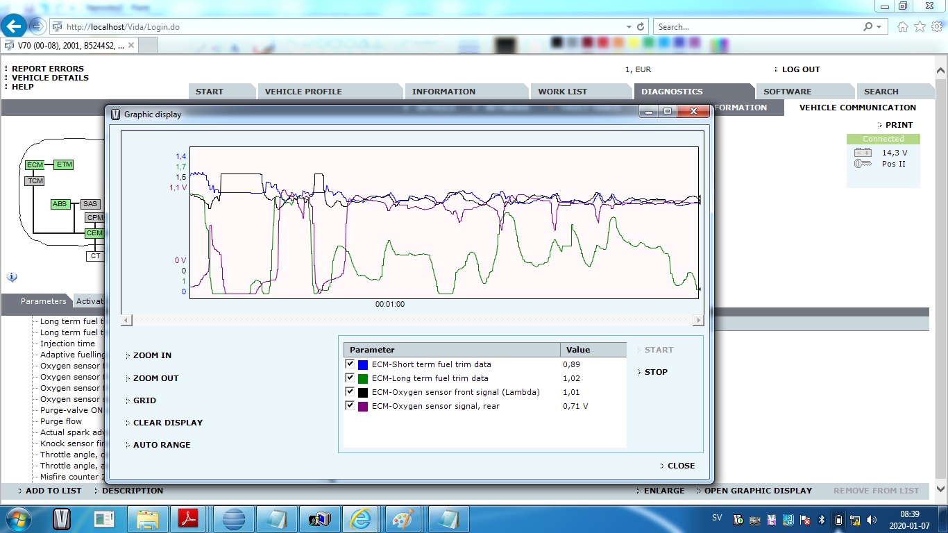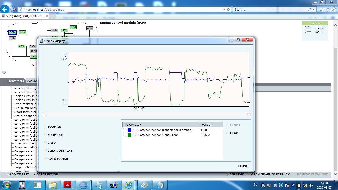 We have been driving today - so I logged some values of the lambda sensors.