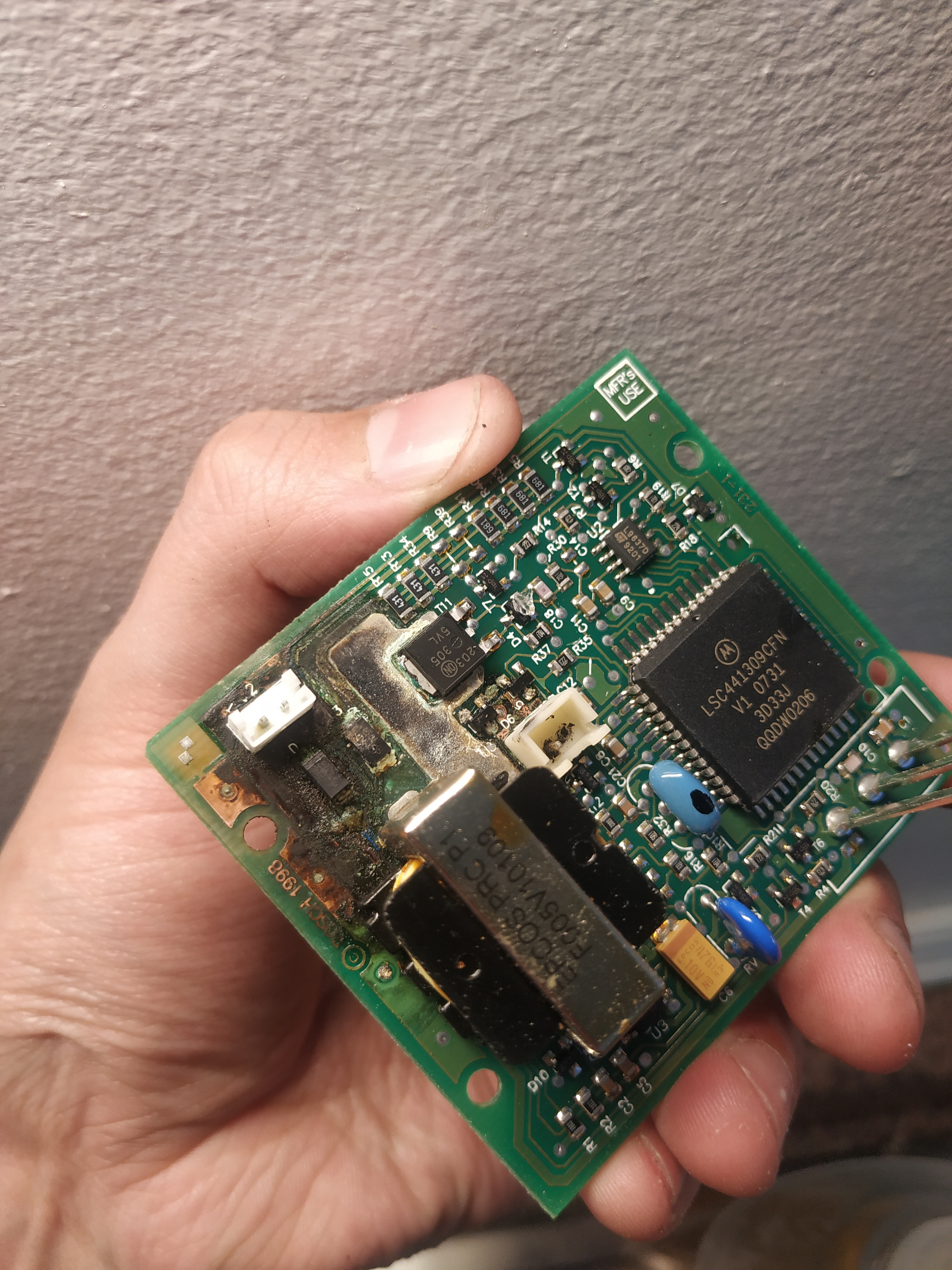 Removed the siren, the internal battery has cooked the board. I suppose that leaves sourcing a new siren as my only choice?
