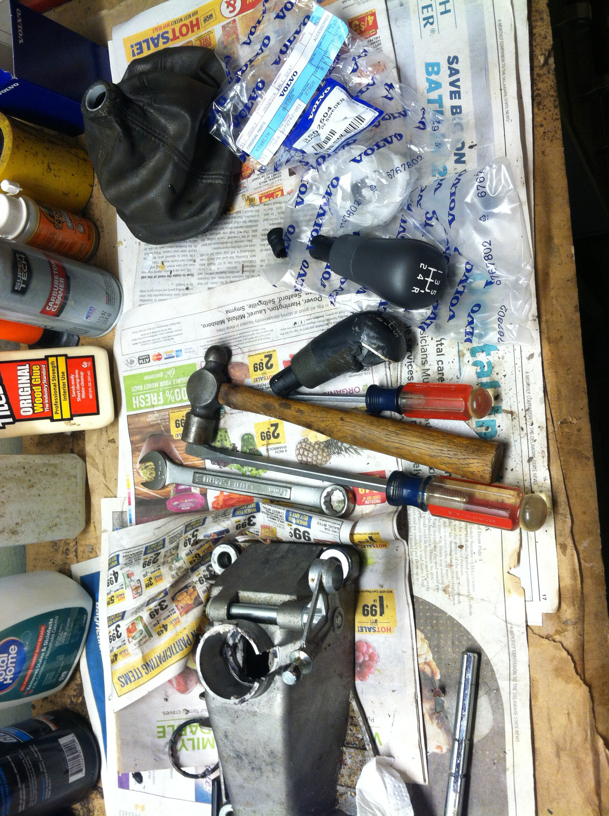 Pretty straightforward once it's on the bench, although I did need the medium-large hammer. Pick the correct size open end wrench for the shaft, put it against the bottom of the offending knob, and wail away.