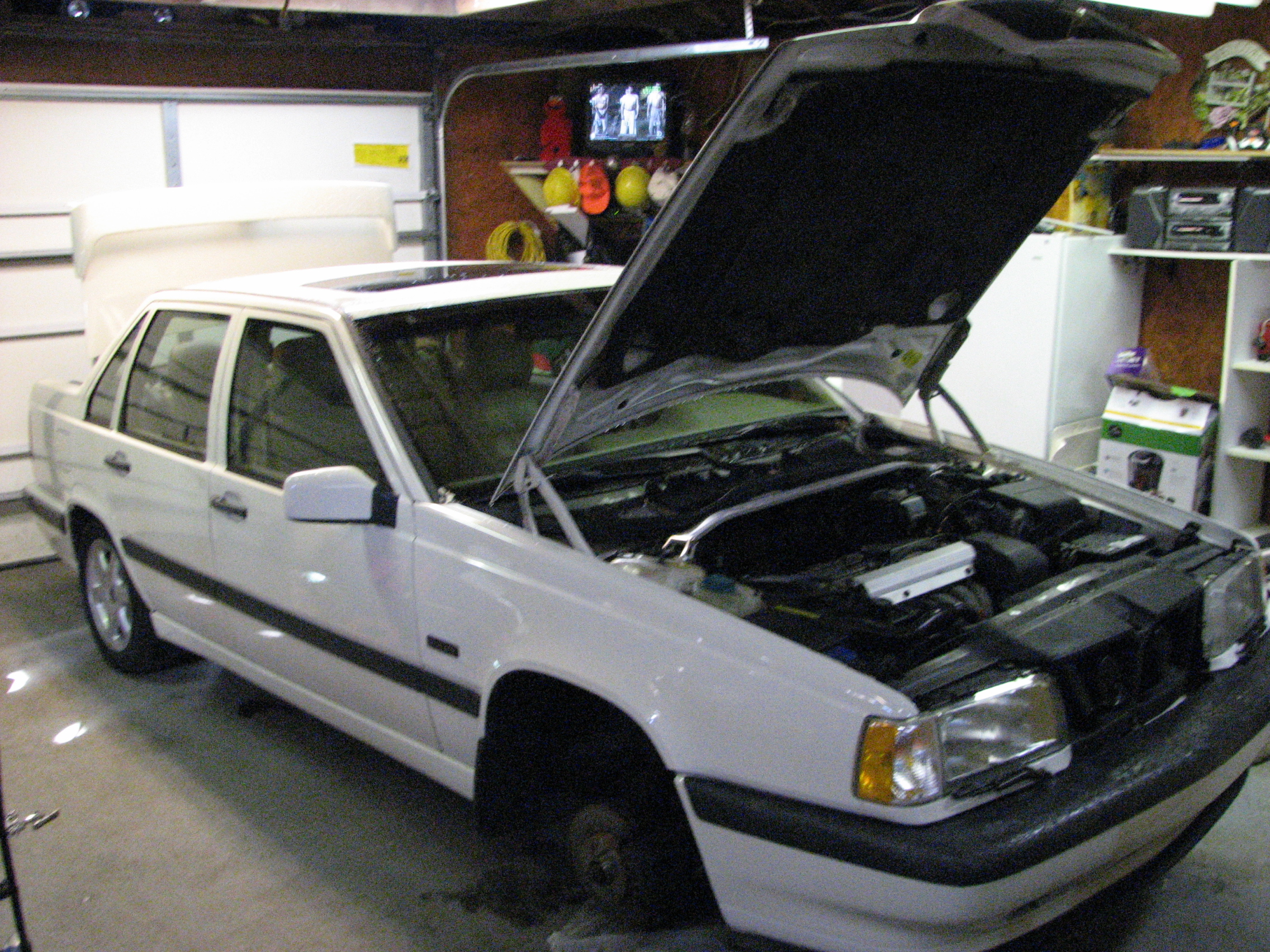 Yesterday now, I had a chance to use a friends heated garage. I had bought front calipers and stainless brake lines to compliment the new rotors and ceramic pads that I had installed last month.