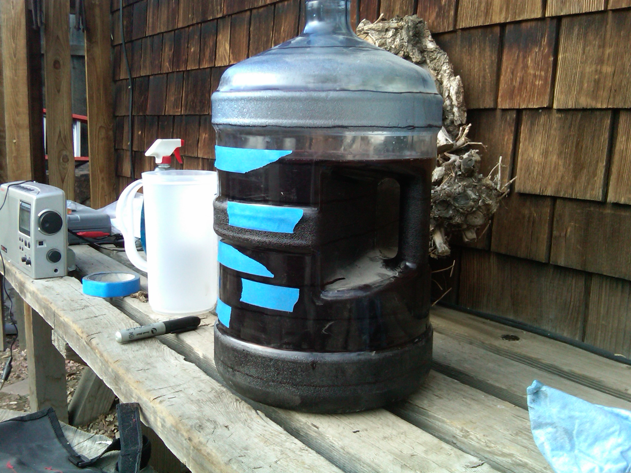I did this today - last time it was easy enough because I just put back in what came out of it. This time, the hose coughed out of the jug and shot fluid all over the ground, so I had a hard time figuring out how much needed to go back in. I eventually just went with the HOT side towards the ground.I've since been inserting and checking it facing the back since the fluid makes a consistent mark. Could some of you give this a try and see if your is the same?