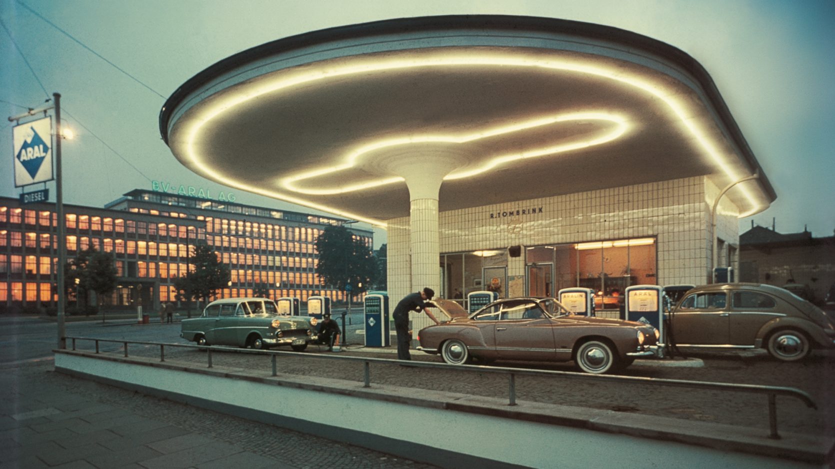 Look at that Italian roof with the tiny posts.... and look at that crazy gas station roof with one fat post!
