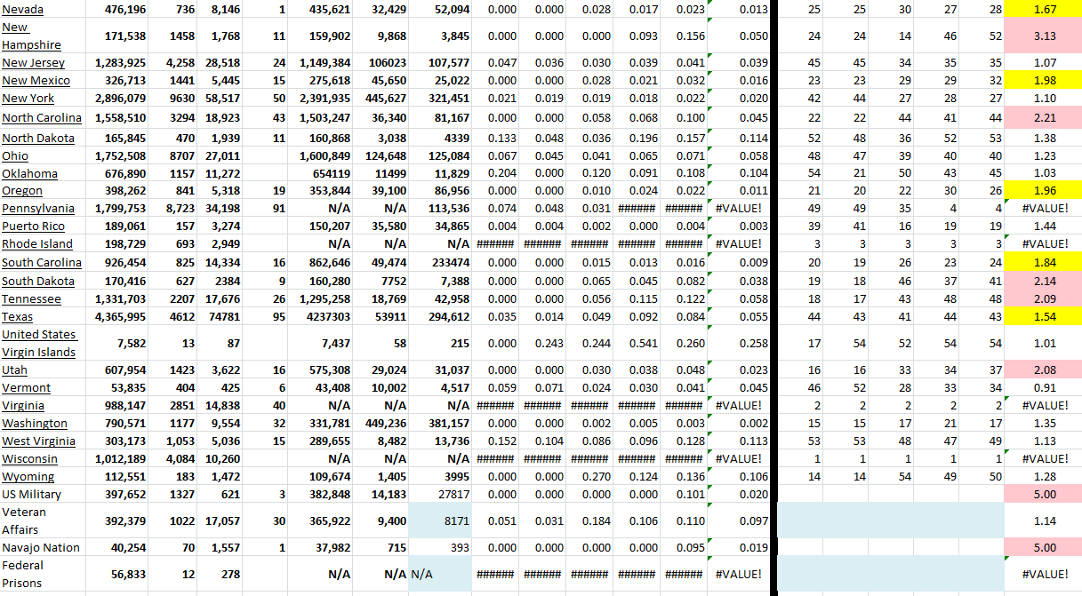 volvolugnut wrote: 02 Dec 2021, 07:29 More statistics on US states and COVID-19 growth rates. My raw information is from Worldometer. Any errors or misrepresentations are my own.
