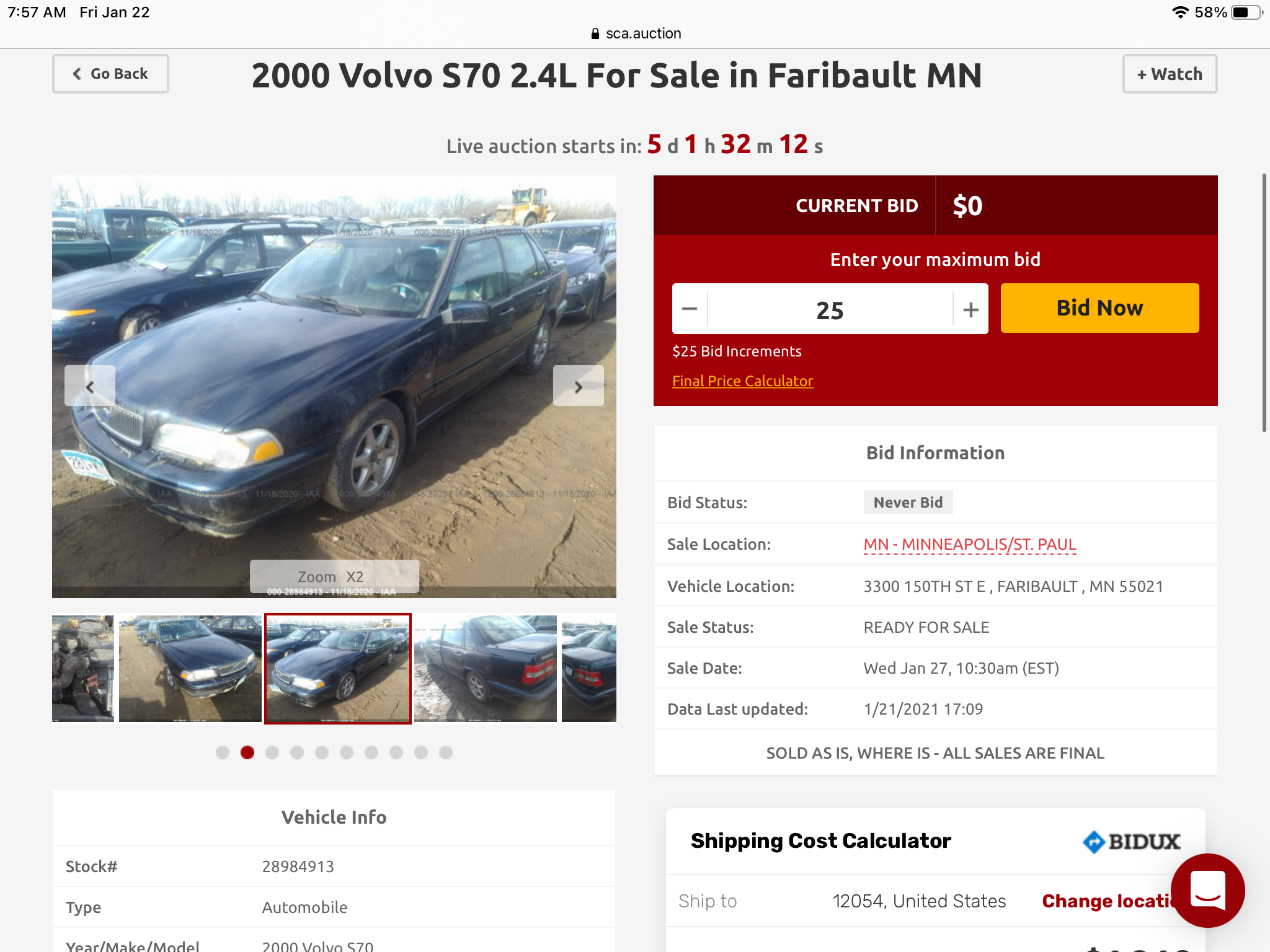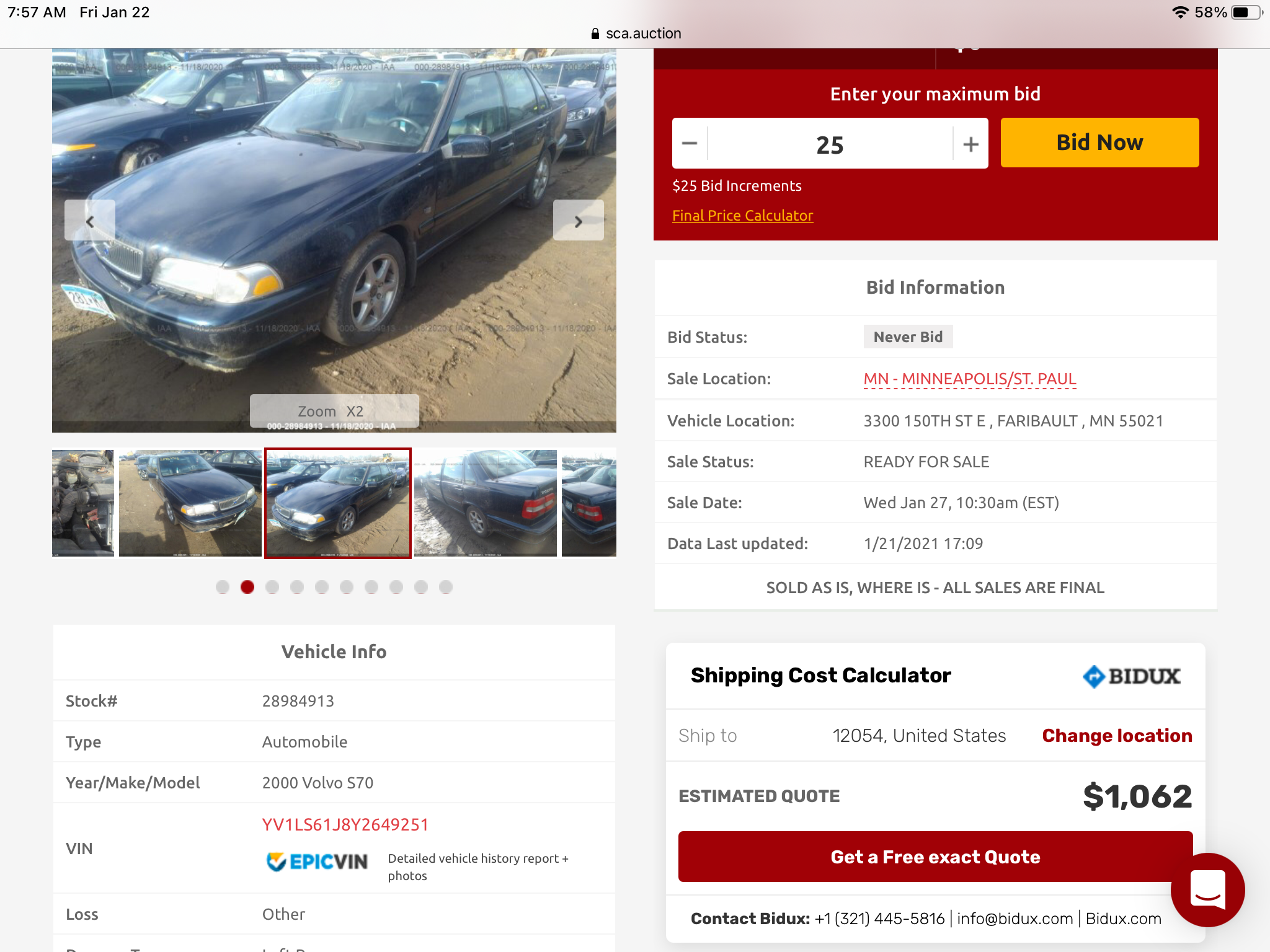 No Volvos in our area so have been checking out Auctions. I actually created an account with SCA yesterday but discovered you can go direct with IAA as SCA is an agent / middleman. Sold for $1,300.