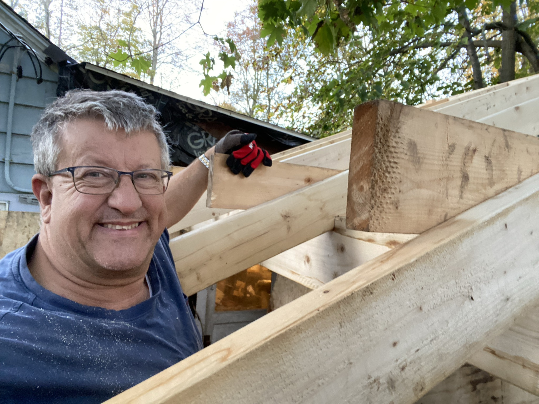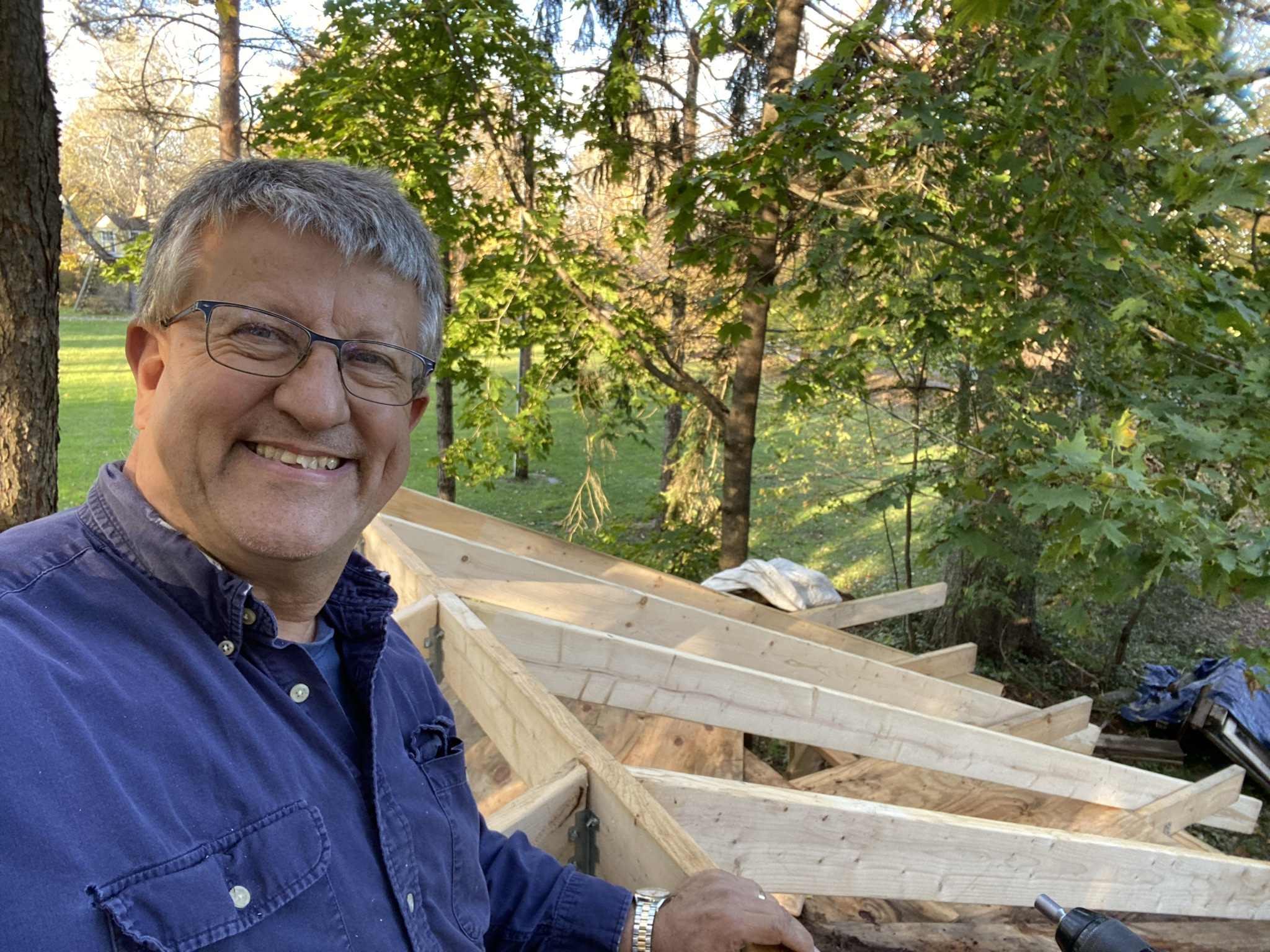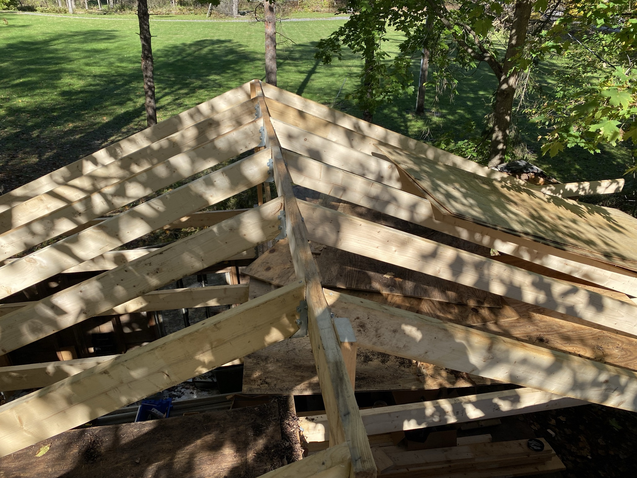 i like doing carpentry work. It is not too fussy and you make visible progress quickly. Something about open framing makes the structure look bigger than the finished building.
