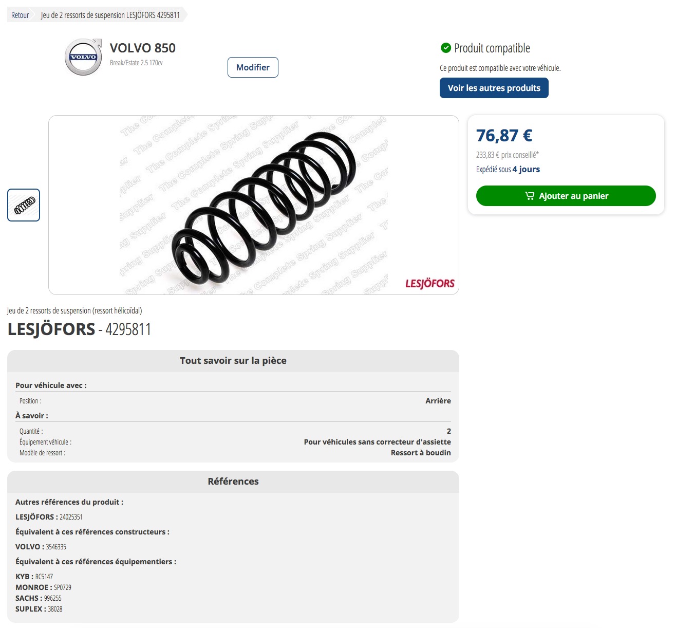 For information.scot850 wrote: ↑25 Feb 2018, 13:11 Can't remember how they are spelled, but Lesfojer that FCP sell are OEM and I have used them n my V70 base and they are fine there at the back. Check as sometimes there are options even in those to make sure you get the correct ones. After 250,000 miles they have done their duty. You will notice the difference ans yes the front may sit a little higher but often they will settle with time.