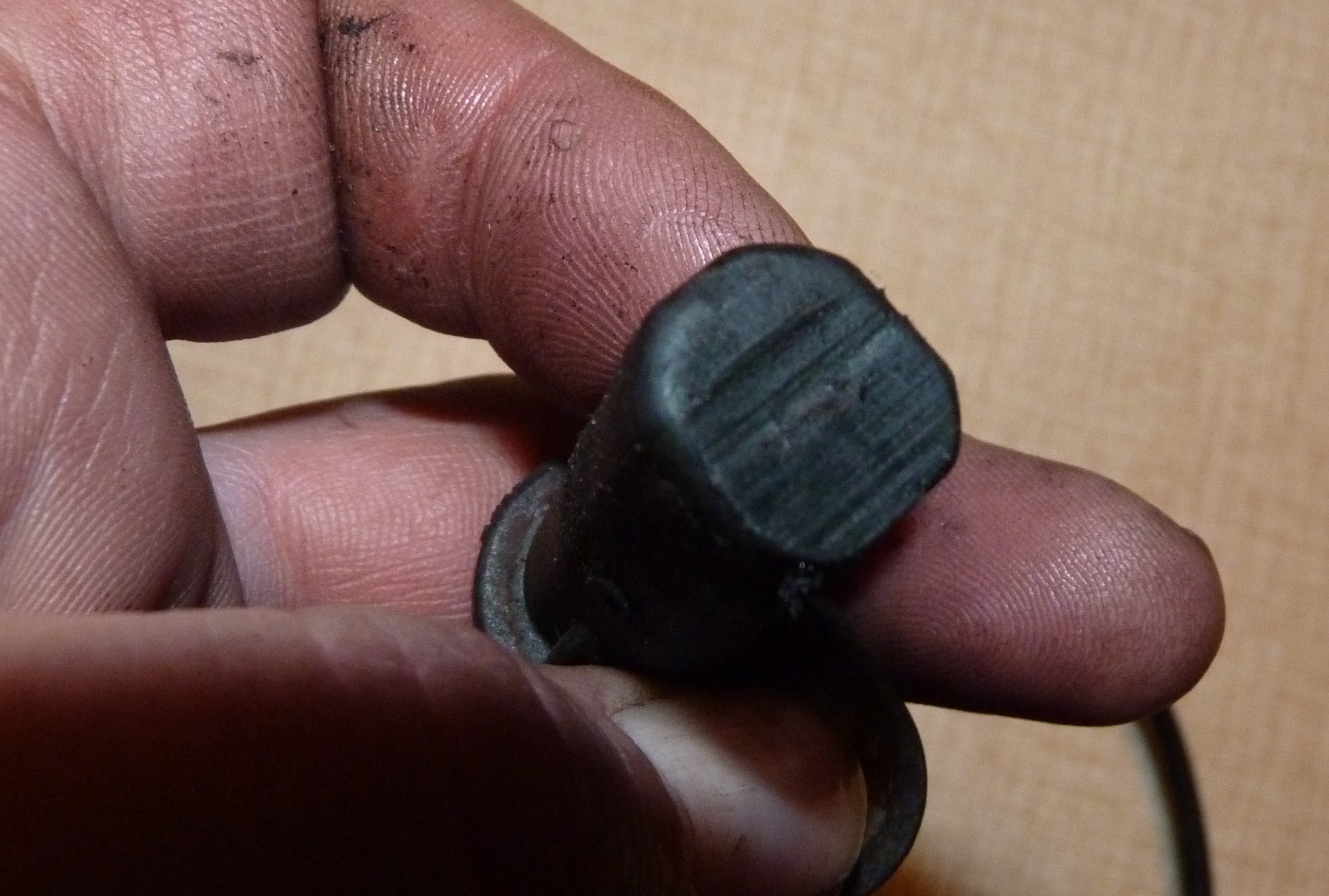 Below picture is from that time, with a sensor for V70 II (perhaps 0,5 mm longer than the old one) and the old tone ring that damaged the original sensor - "standing" zigzag: