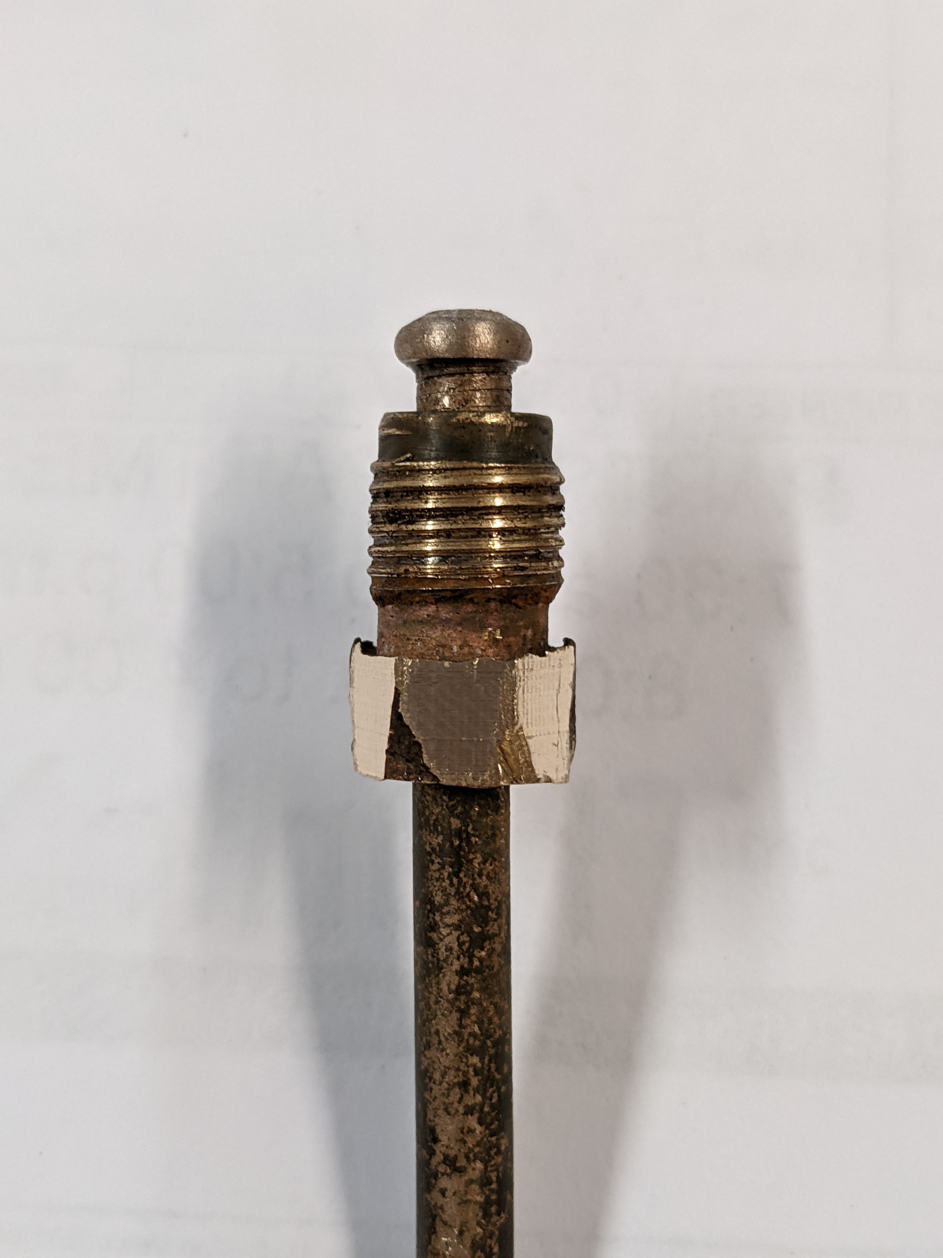 I no longer think that brass fittings are the best option for these cars. It's great that they don't rust but their hex heads round off too easily because they're soft. I suspect they're difficult to remove because the caliper hole gets rusty around the top of the fitting, shrinking the opening a bit, gripping the fitting. When you remove the fitting, the smaller hole flattens the soft fitting threads on its way out. And because the hole is smaller, a new fitting with properly pointy threads won't fit in. This is exactly what happened on my rusted rear caliper. I had to reuse my ruined fitting because only its worn threads would fit back into the caliper (and its ruined hex head had to be machined to be usable again).